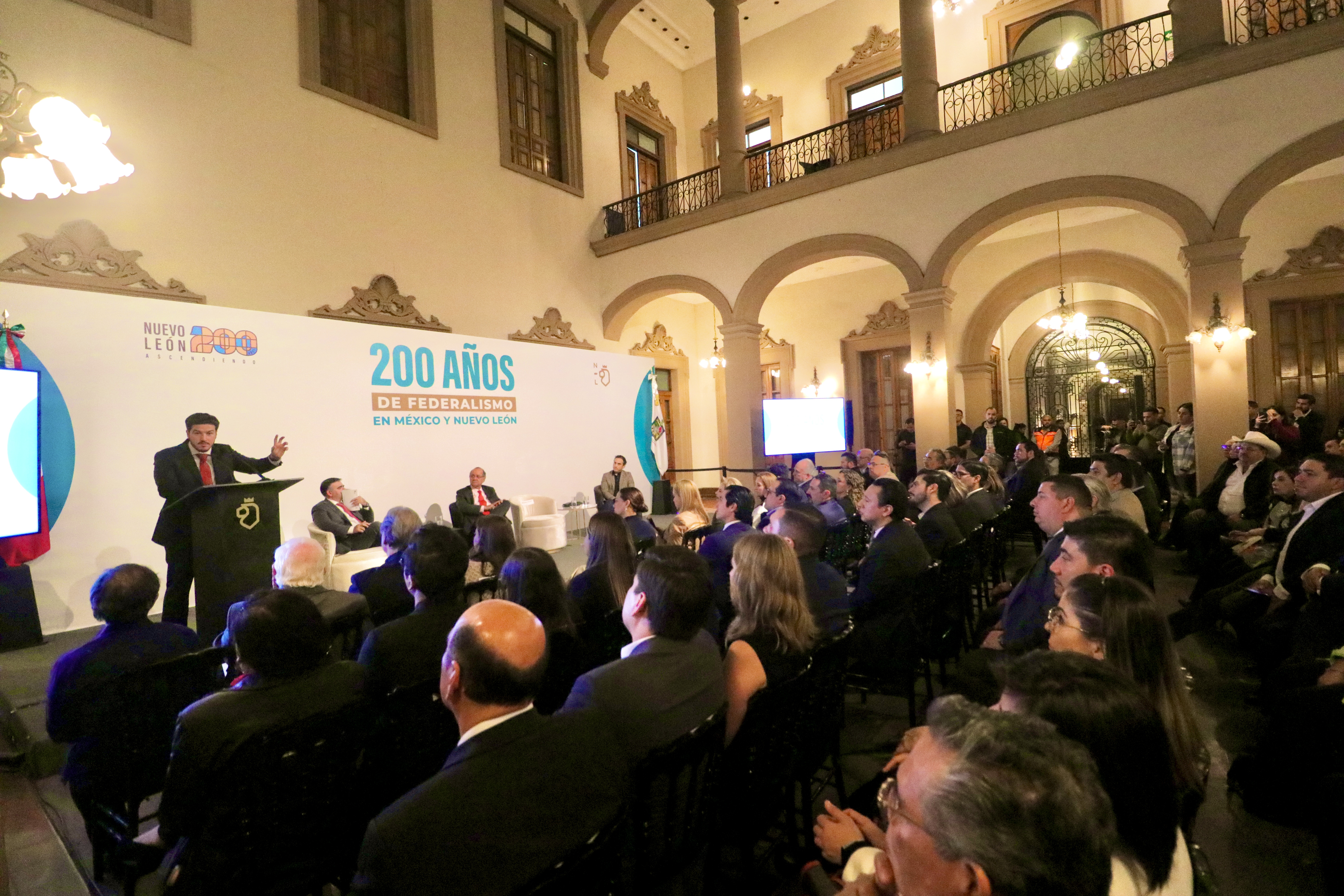 Al encabezar el Panel “200 años del Federalismo en México y Nuevo León: Origen, Logros y Retos”, en el Antiguo Patio de Tesorería en Palacio de Gobierno, indicó que es necesario que Nuevo León y Federación amplíen su coordinación para que con nuevas leyes se puedan resolver problemas que afectan a la población como el medio ambiente.