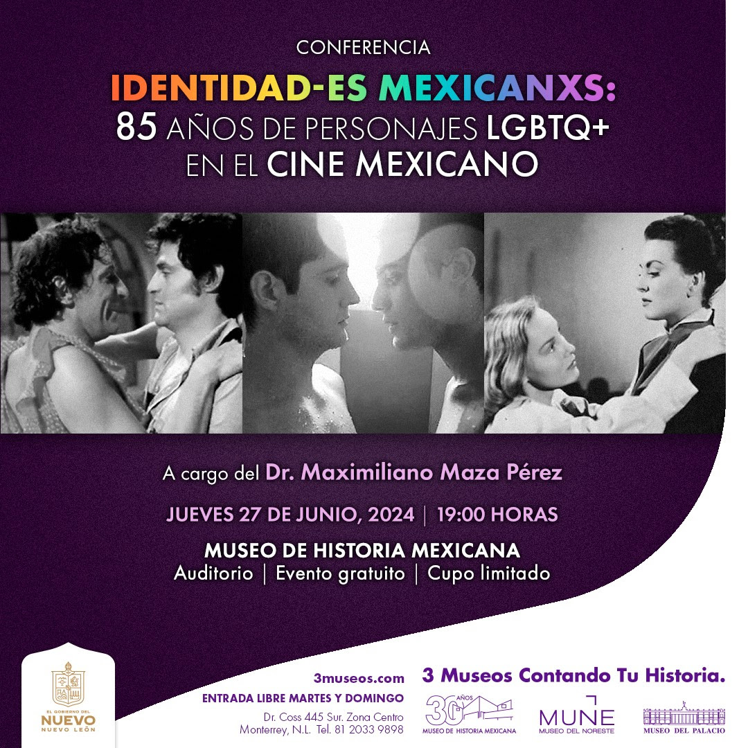 Monterrey, Nuevo León.- En un esfuerzo por abordar y desafiar los estereotipos tradicionales de género, el Museo de Historia Mexicana presenta la conferencia “Identidad-es mexicanxs: 85 años de personajes LGBTQ+ en el cine mexicano”, a cargo del destacado experto en estudios de género y cine Maximiliano Maza, el jueves 27 de junio a las 19:00 horas, en el auditorio del Museo.
