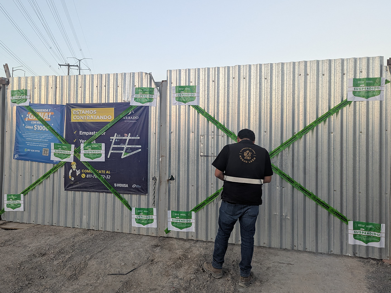 También se realizaron dos suspensiones de obras y actividades por incumplimiento ambiental, la suspensión de una obra en demolición, ubicada en Monterrey, a cargo de una persona física, debido a las emisiones generadas durante su desarrollo y por incumplimiento de las disposiciones de la legislación ambiental vigente y la otra suspensión total de actividades de Concretos Delese, S.A. de C.V., ubicada en Apodaca, por no cumplir con las medidas correctivas dictadas previamente por esta Dependencia, relacionadas con el manejo de residuos y control de emisiones.
