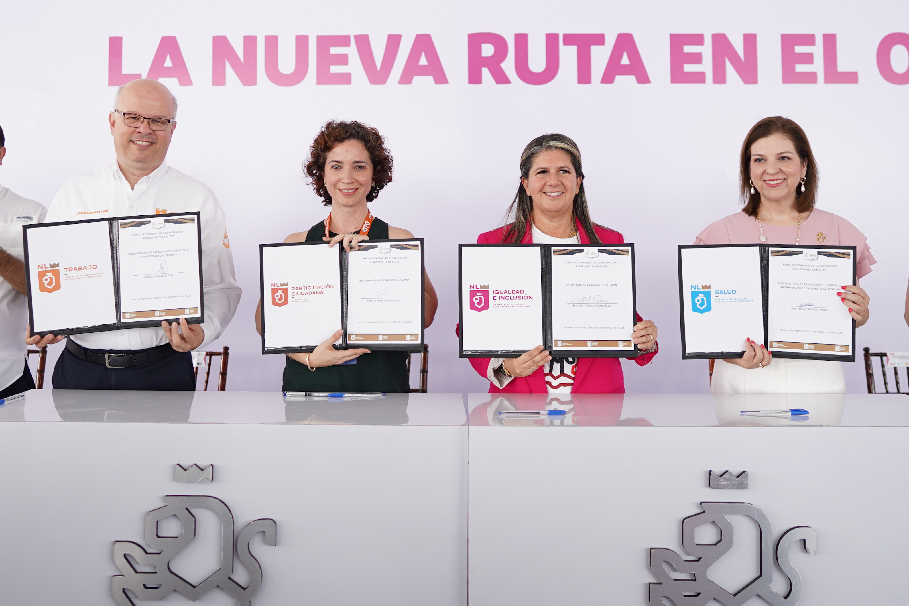 En el Centro Comunitario de San Bernabé, se signó el convenio por parte de las Secretarias de Igualdad e Inclusión, Martha Herrera; Participación Ciudadana, Ximena Peredo; el Subsecretario de Capacitación y Empleo de la Secretaría del Trabajo, Arturo Cavazos Leal, y la Subsecretaria de Prevención y Control de Enfermedades de la Secretaría de Salud, Mirthala Cavazos Parra.