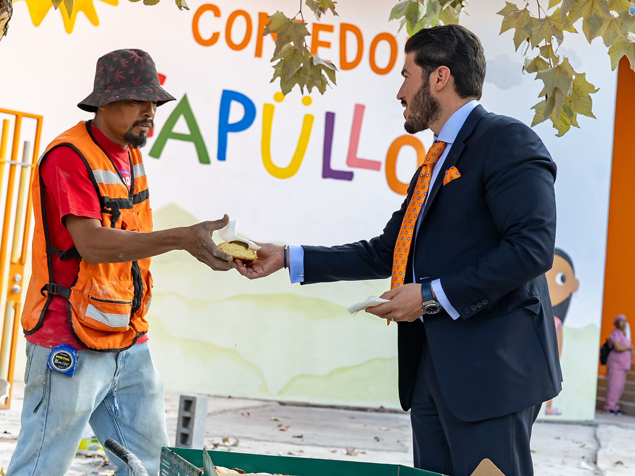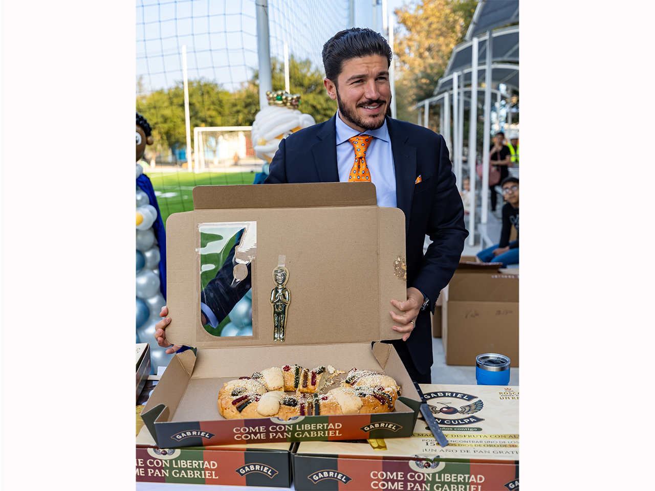 Durante la convivencia, el mandatario estatal y Rodríguez Cantú entregaron la tradicional rosca y chocolate caliente a los menores.