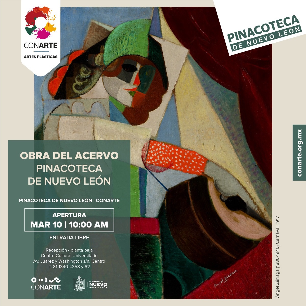 “Carnaval”, permanecerá en exhibición de marzo a mayo de 2023. La Pinacoteca de Nuevo León | CONARTE se encuentra ubicada en el Colegio Civil Centro Cultural Universitario de la Universidad Autónoma de Nuevo León (Juárez y Washington s/n Centro de Monterrey).