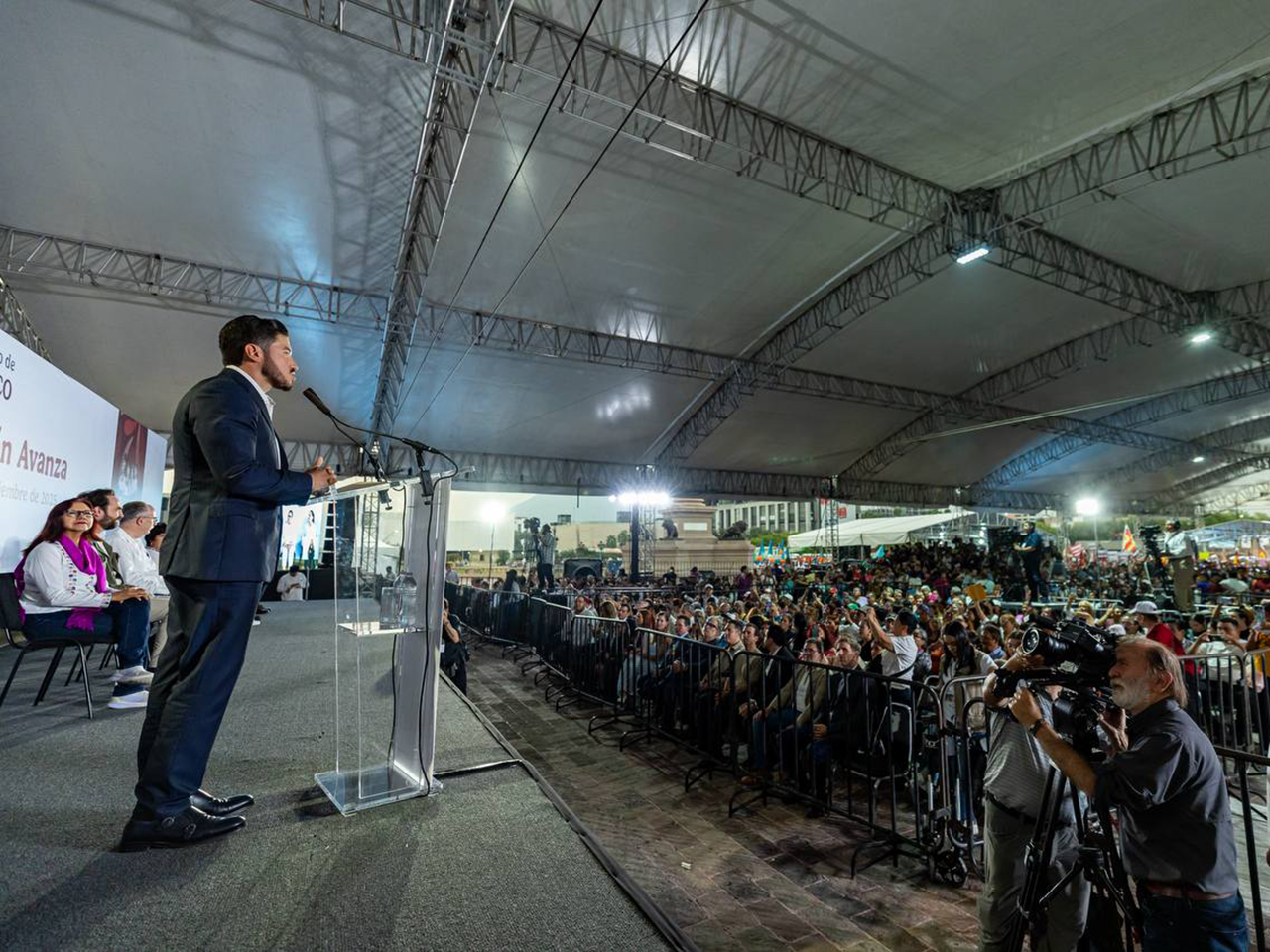 Monterrey, Nuevo León.- Al asistir al Informe del Primer Año de Gobierno de la Presidenta Claudia Sheinbaum en Nuevo León, el Gobernador del Estado, Samuel Alejandro García Sepúlveda agradeció el apoyo del Gobierno Federal para construir la mayor obra pública nunca antes vista en la entidad.