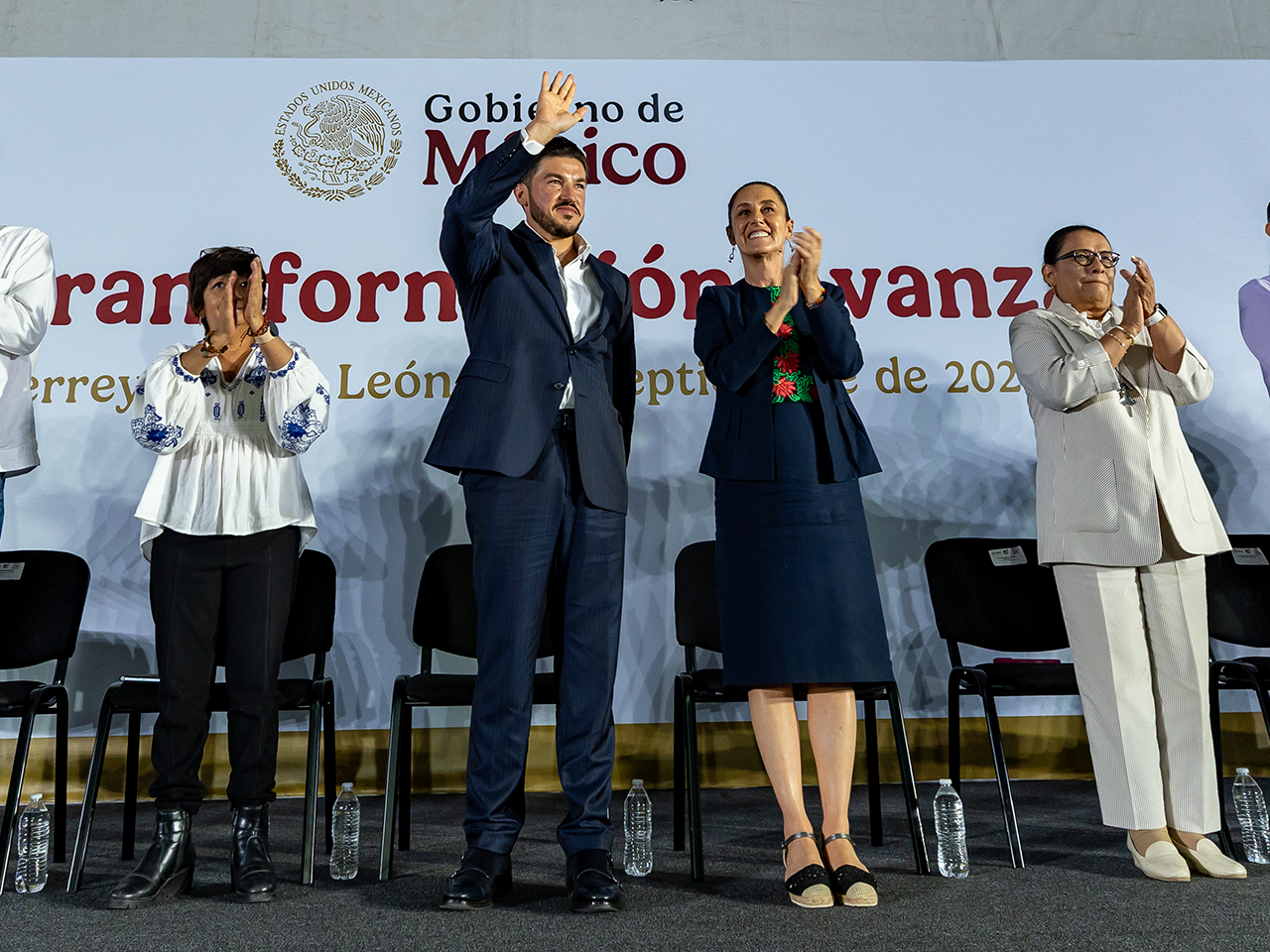 Durante el mensaje que dirigió en el evento, el Mandatario estatal dio la bienvenida a la Ejecutiva federal y destacó el trabajo coordinado que contribuyó a colocar a Nuevo León en primer lugar en ingresos, reducción de pobreza extrema, seguridad, educación y salud.