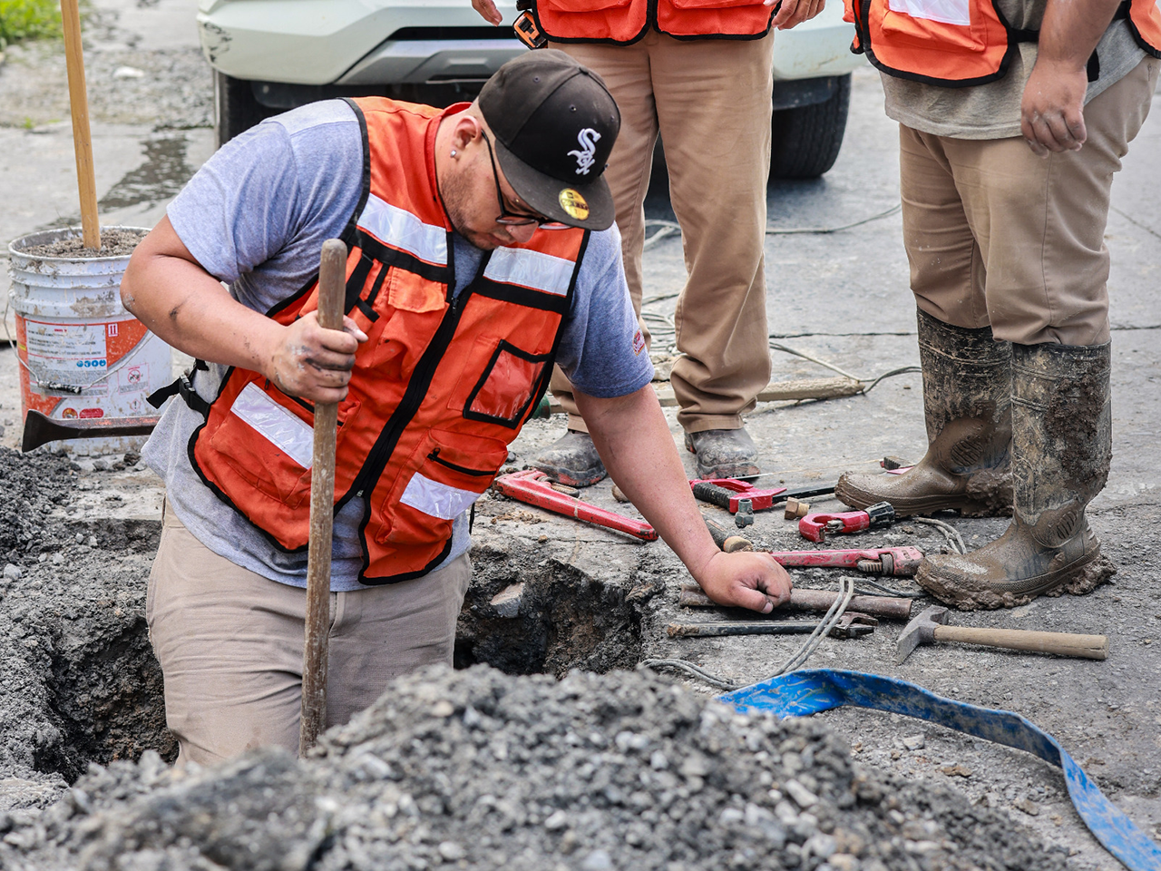 Del 1 al 31 de octubre, las cuadrillas operativas repararon 4,920 fugas en banquetas (49%), 3,846 en medidores (38.3%) y 1,264 en calles (12.6%), logrando mantener tiempos de respuesta récord en beneficio de miles de familias.
