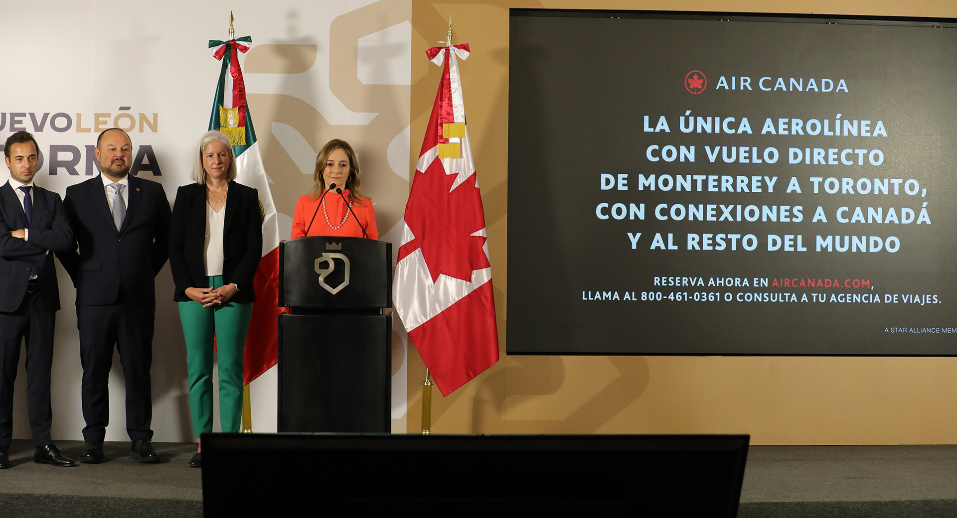 Monterrey, Nuevo León.- Air Canada, junto con la Secretaría de Turismo de Nuevo León y OMA, anunciaron la nueva ruta Monterrey-Toronto, convirtiéndose en la única aerolínea canadiense en ofrecer vuelos directos y sin escalas entre ambos destinos.