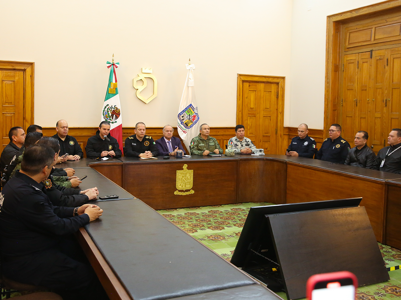 En la Mesa de Seguridad participaron autoridades de los tres niveles de gobierno, la Defensa, Guardia Nacional, Centro Nacional de Inteligencia, así como la Fiscalía General de la República, la Fiscalía General del Estado, la Agencia Estatal de Investigaciones y las distintas policías municipales del área metropolitana.