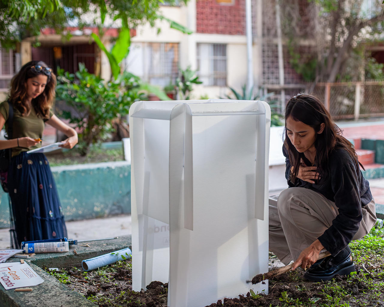 Autoconstructores: grupo autodidacta que transforma sus espacios según necesidades funcionales y emocionales. Actualmente diseñan un muro armable de adobe para cultivar plantas nativas.