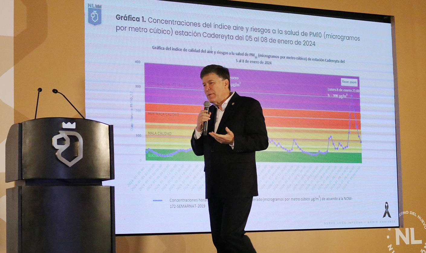 “Esto nos puede llevar a estos niveles principalmente en las estaciones de Cadereyta, Juárez, Apodaca y también pudiéramos llegar a tener esta situación hasta Escobedo o incluso en Santa Catarina”, explicó la directora de la Agencia de la Calidad del Aire.
