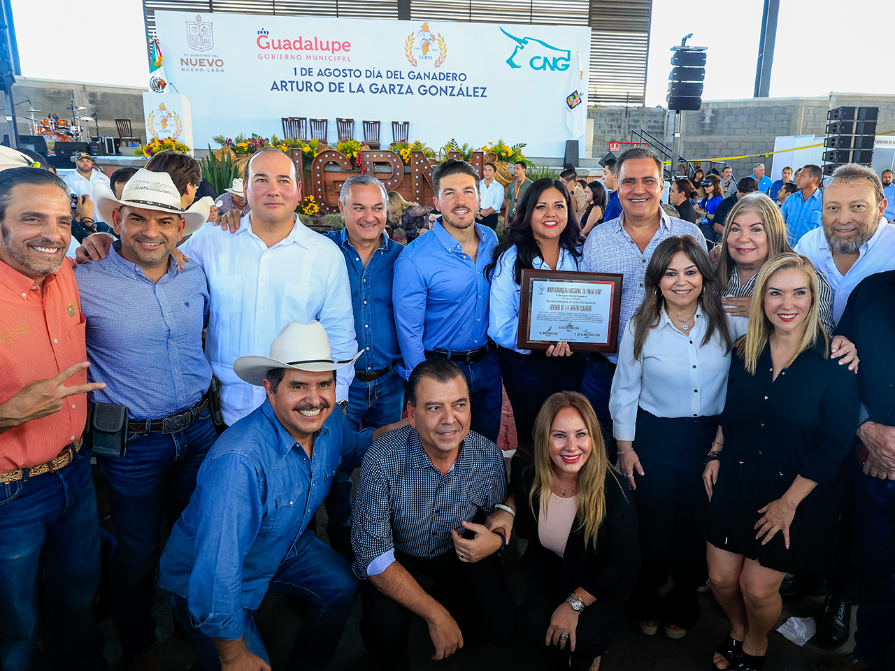 Guadalupe, Nuevo León.- En el marco del Día del Ganadero que se celebra el 1 de agosto de cada año en Nuevo León, el Gobernador Samuel Alejandro García Sepúlveda encabezó el homenaje a Arturo de la Garza González, autor del libro “Historia de la Unión Ganadera de Nuevo León…Lo que Viví, Así lo Recuerdo”.
