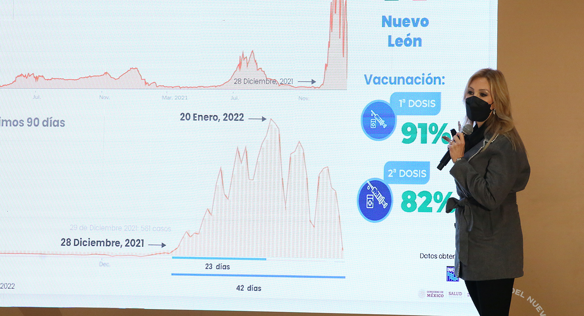 "En Nuevo León iniciamos el 28 de diciembre con este ascenso rápido y también tuvimos nuestro pico semejante al resto de los países el día 23, y a partir de ahí la tendencia ha sido hacia la baja, obviamente algunos días con descensos importantes, como lo vemos el día de hoy, posiblemente tengamos algún repunte, no tan alto como el que hemos venido identificando, pero la tendencia franca es a la disminución".