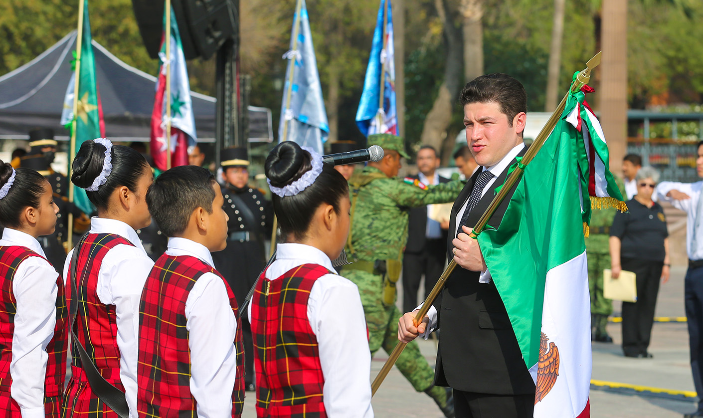 En su mensaje oficial por el Día de la Bandera, el Gobernador Samuel García señaló que los colores verde, blanco y rojo de la Bandera nos tienen que recordar que lo importante es México.