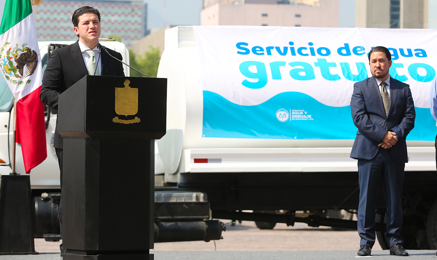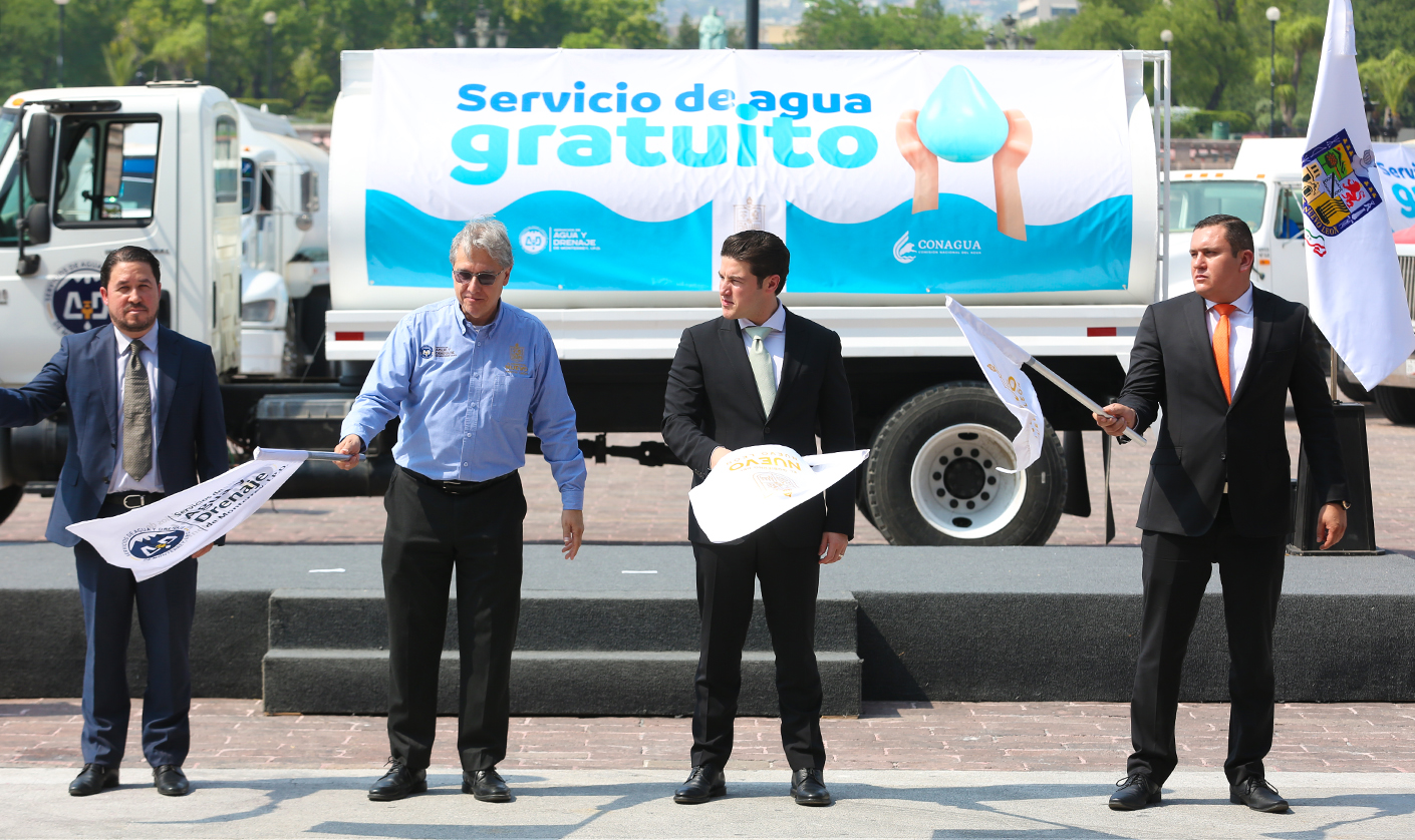 Posterior al Nuevo León Informa el Gobernador dio el banderazo de salida a 30 pipas, de las 120 con las que se contarán, que recargarán los 159 tanques cisterna que están distribuidos a lo largo del área metropolitana, con el fin de agilizar el abasto en la ciudad.