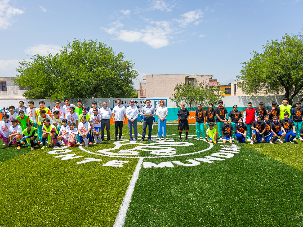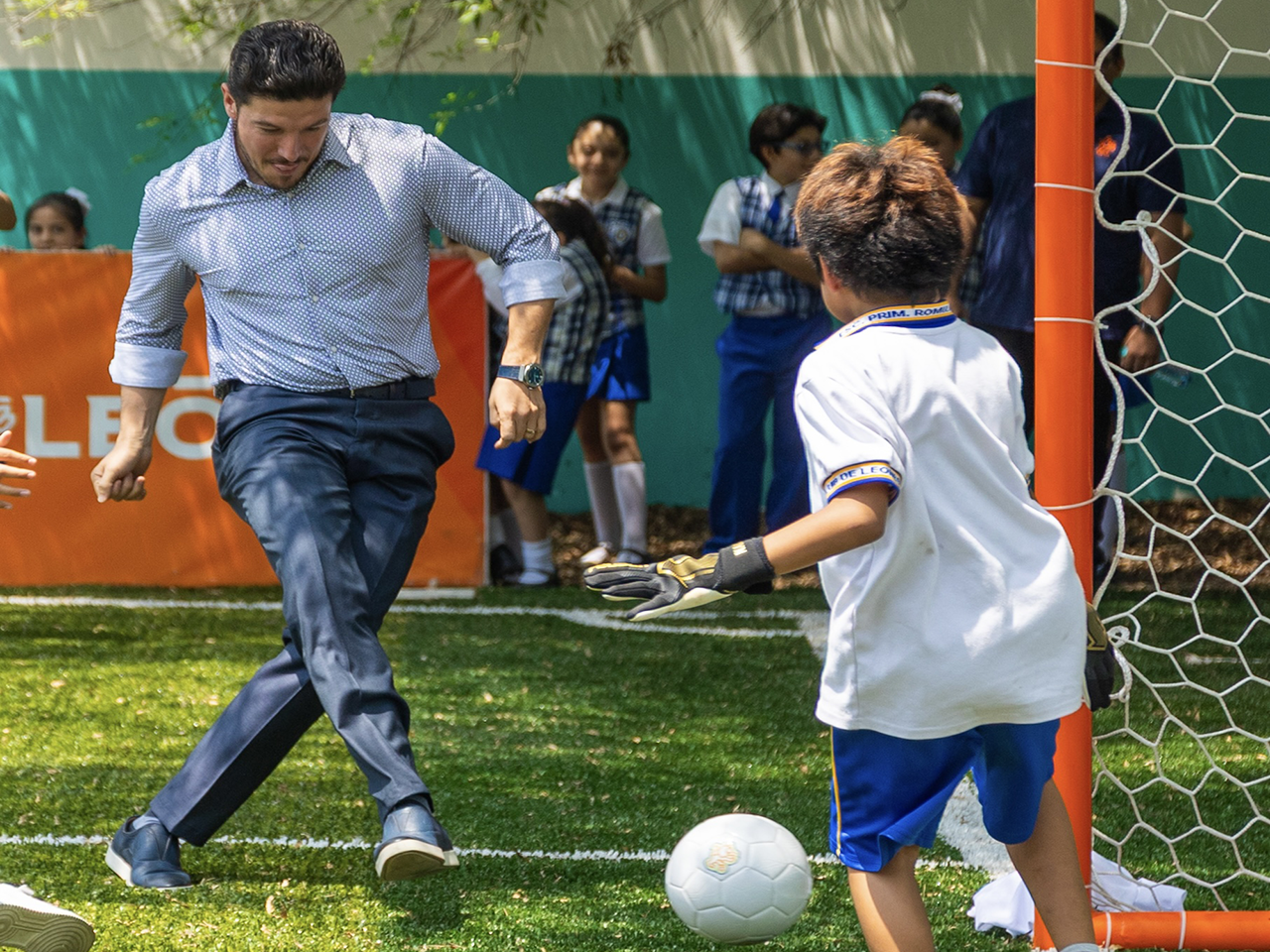 • Durante el regreso a clases también se llevó a cabo la entrega de la cancha 515 en donde jugó una cascarita con los alumnos de la Primaria Club de Leones 19 “Rómulo Garza”.