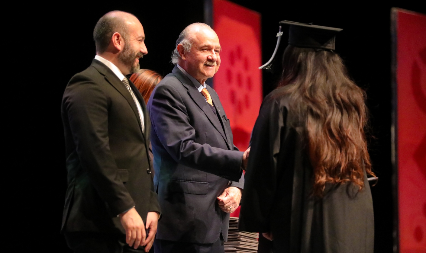 Junto al Rector de la U-ERRE, Ángel Casán; Javier Navarro atestiguó la entrega de diplomas de titulación a graduados de licenciatura y maestría de las generaciones de otoño 2022, primavera 2023 y verano 2023, sumando un total de 803 graduados, entre profesional y posgrado.