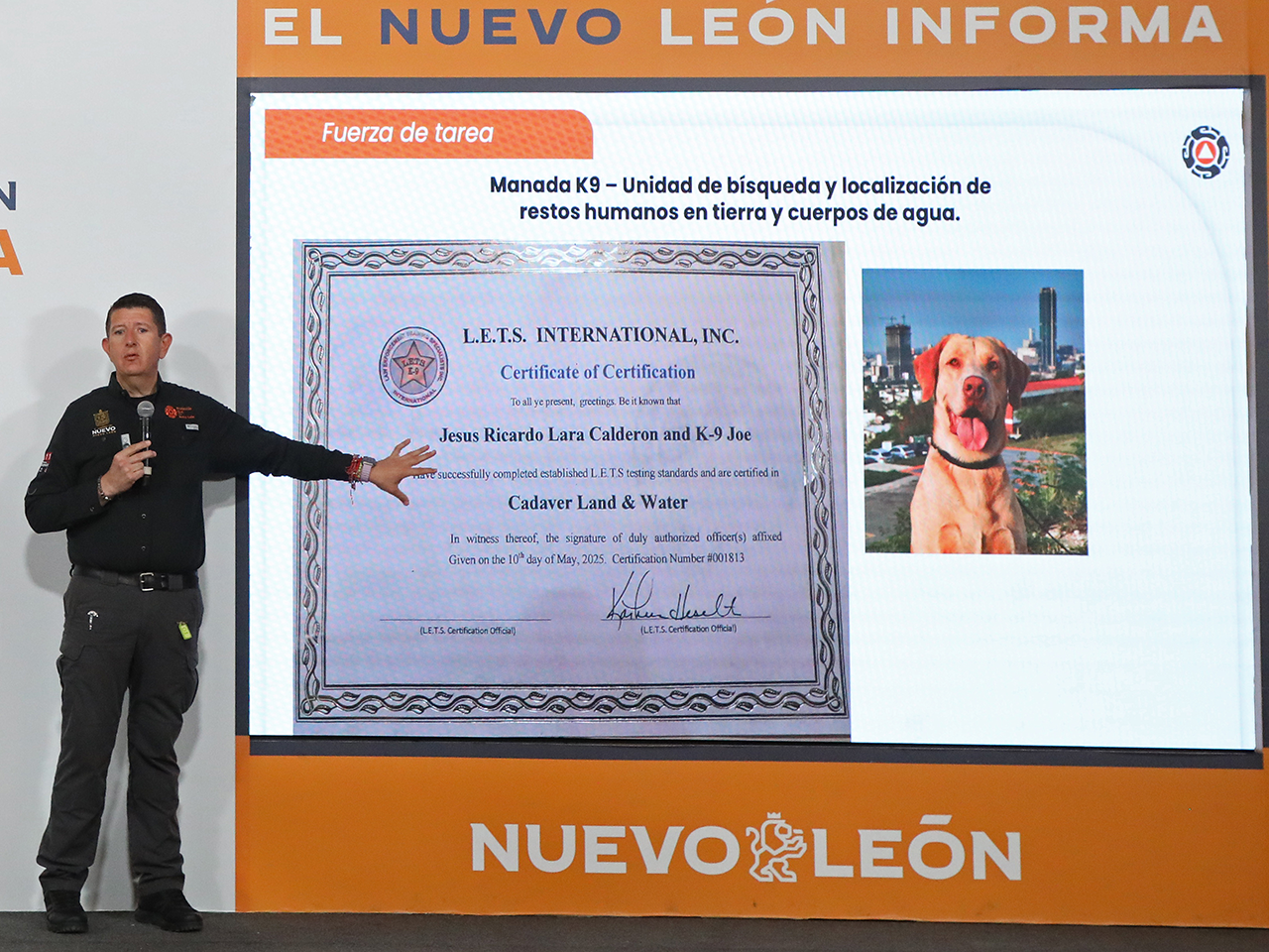 En el Nuevo León Informa el titular de la dependencia estatal, Erik Cavazos dio a conocer que el apoyo consiste en dos bloques con equipo especializado, alrededor de 30 elementos y caninos del escuadrón K 9 debidamente certificados.
