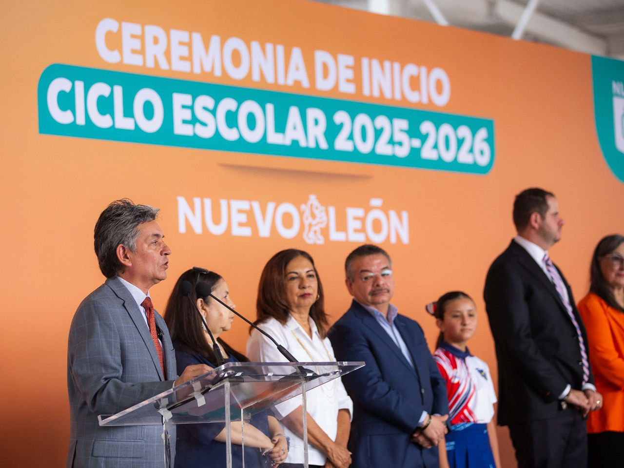 El evento tuvo lugar en la Primaria Ignacio Zaragoza “Club de Leones No. 10” de Monterrey, donde el Secretario de Educación, Juan Paura García, destacó que el estandarte de este año escolar será brindar una Educación Incluyente, que garantice el derecho a la educación de todas las personas.