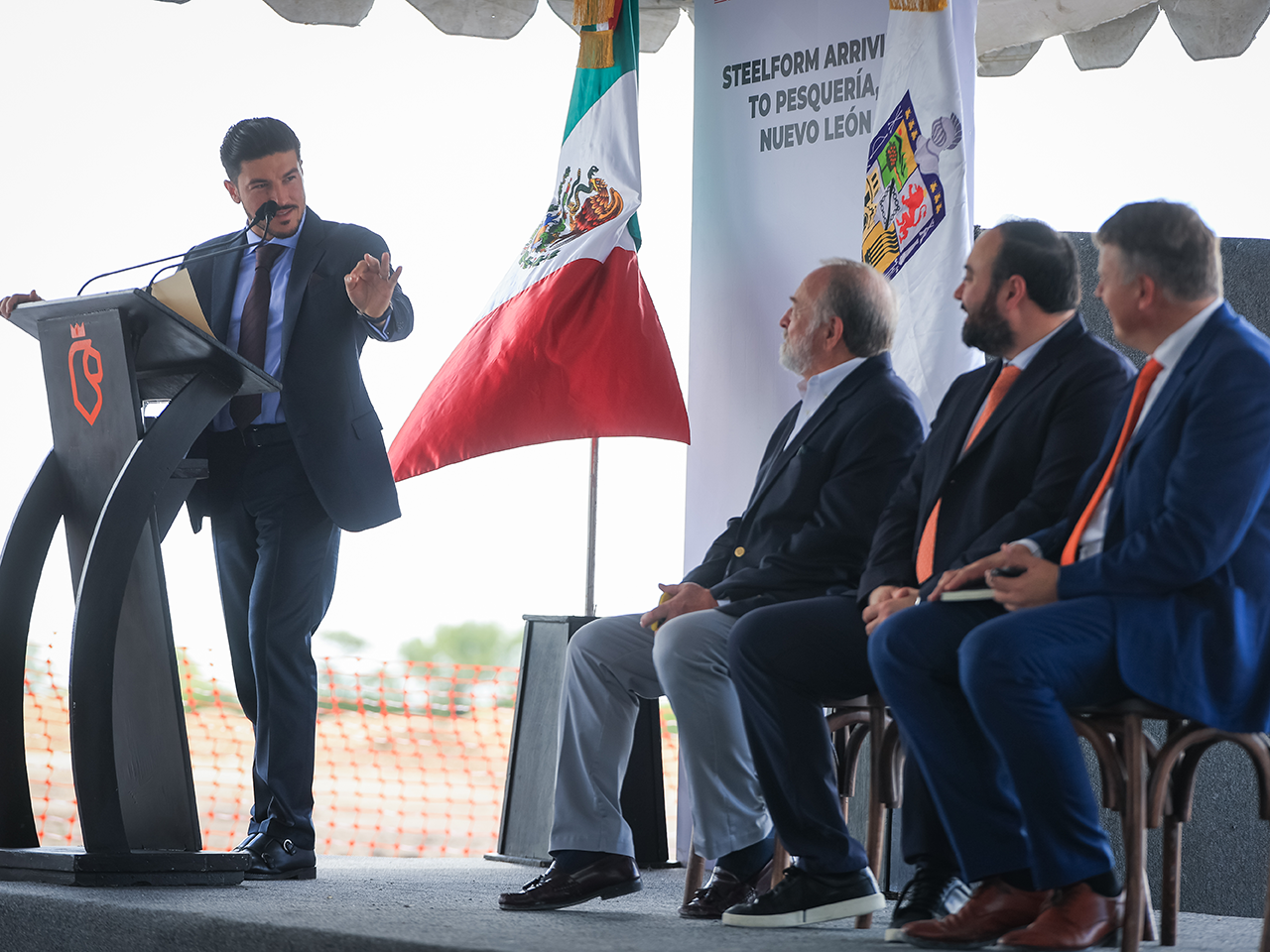 Pesquería, Nuevo León.- Durante la ceremonia de inicio de construcción de la nueva planta de Steelform en este municipio, el Gobernador de Nuevo León, Samuel García Sepúlveda, aseguró que el estado vive un momento histórico en materia económica, consolidándose como el mayor polo de inversión extranjera en el país.