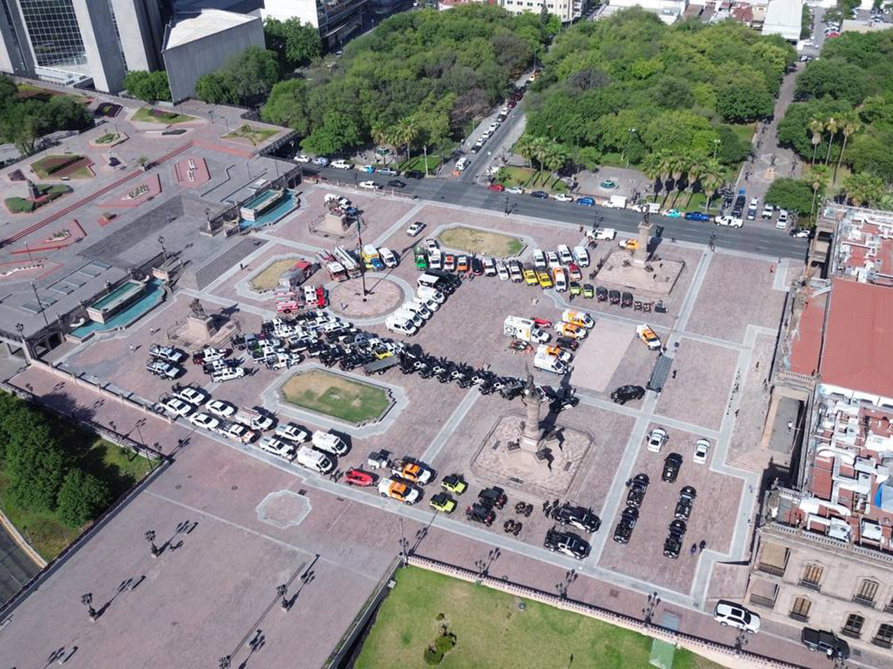 El inicio del despliegue policíaco y de corporaciones de auxilio que se realiza en coordinación con elementos municipales y federales se llevó a cabo en la Explanada de los Héroes.