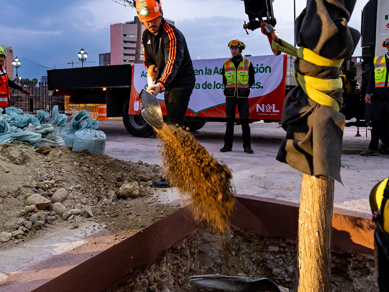 Monterrey, Nuevo León.- Siguiendo con la estrategia y avanzado a la meta de plantar más de un millón de árboles en la ciudad, el Gobernador de Nuevo León, Samuel Alejandro García Sepúlveda dio arranque a lo que será una transformación histórica en la Explanada de los Niños Héroes, donde se plantarán 64 árboles nativos de la región.
