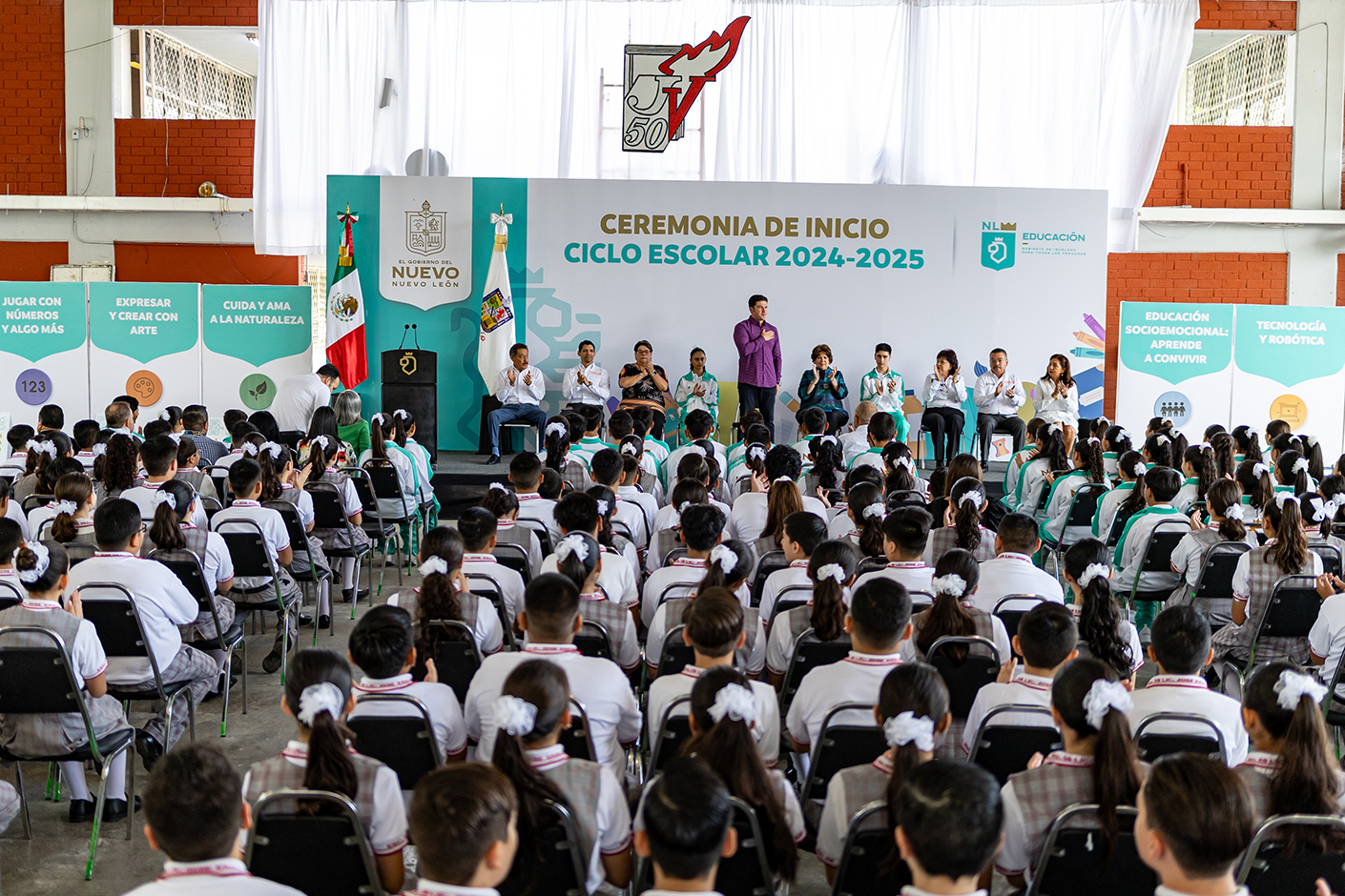Monterrey, Nuevo León.- Con el lema de “Todos por la Educación de Nuevo León”, el Gobernador del Estado de Nuevo León, Samuel Alejandro García Sepúlveda puso en marcha el nuevo ciclo escolar 2024-2025.