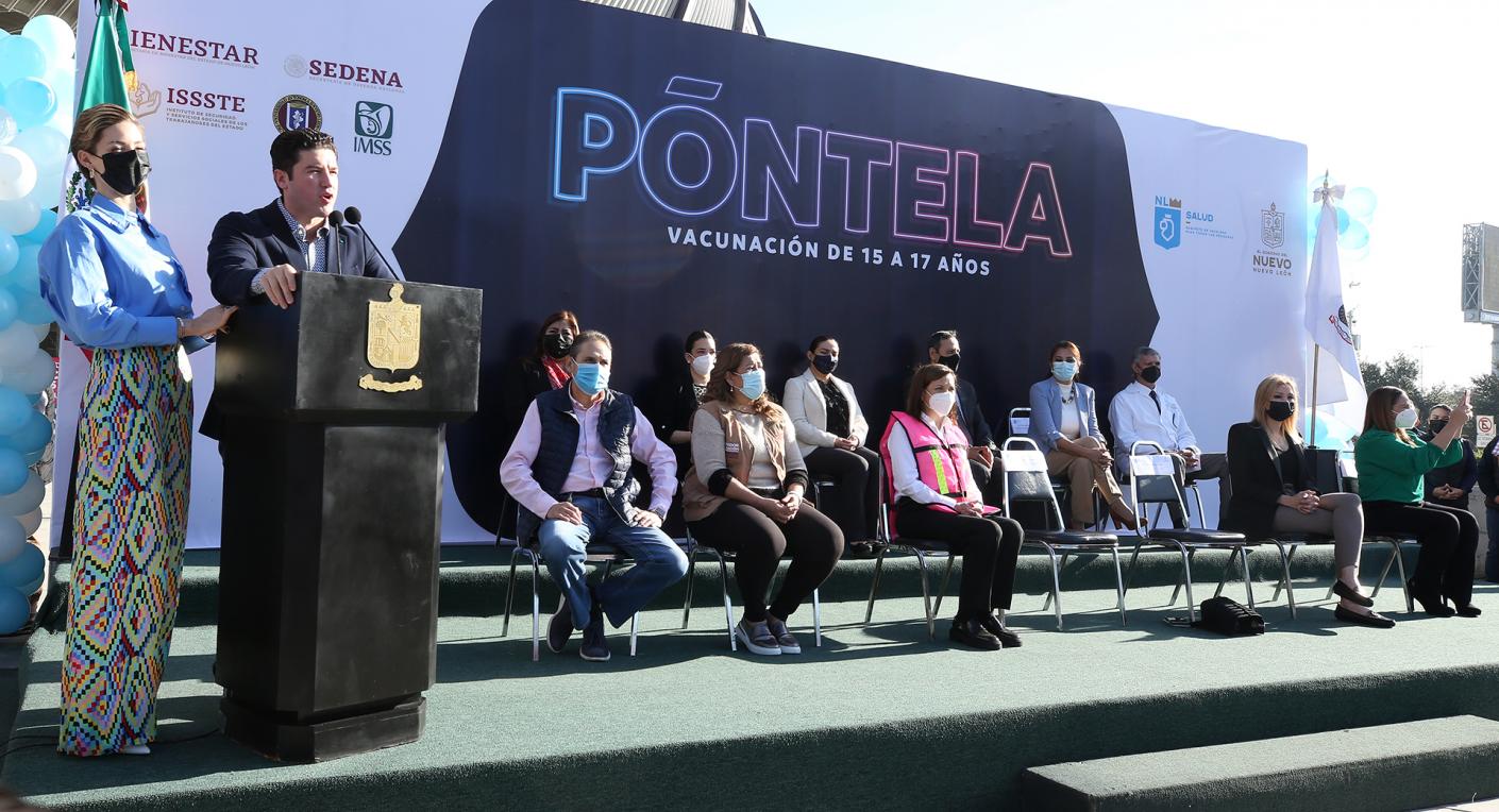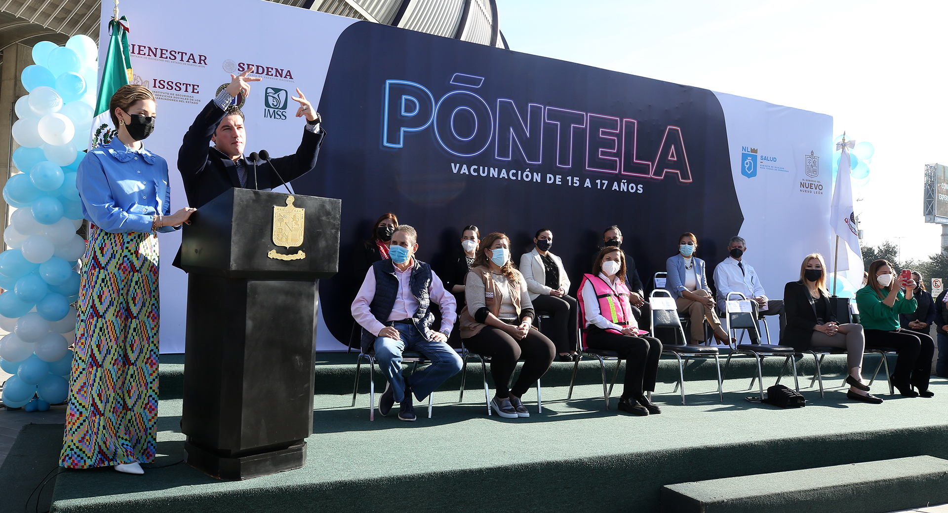 "Es bien complicado en el mundo que nos dieran vacunas a los jóvenes, y a Nuevo León van a llegar 350 mil vacunas para cuidarlos y que puedan seguir estudiando y puedan cuidar también a sus papás y a sus familias", expresó el Mandatario estatal.