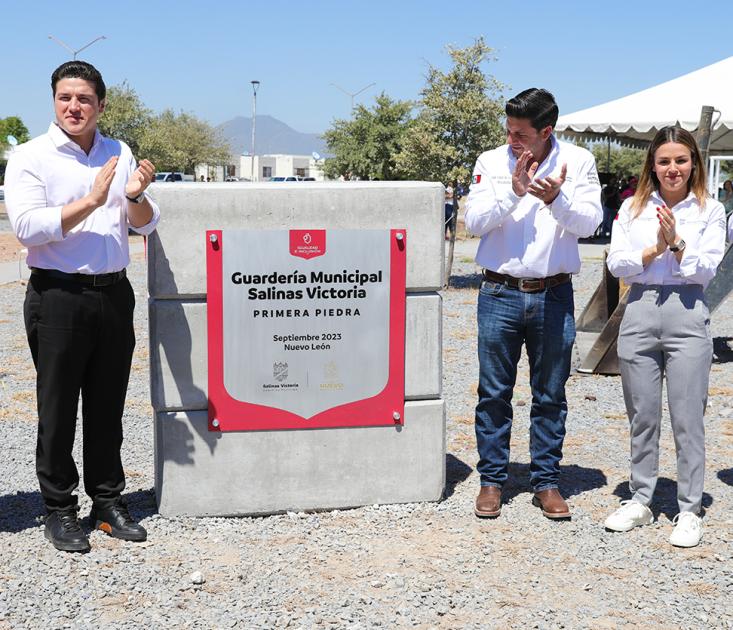 Salinas Victoria, Nuevo León.- El Gobernador de Nuevo León, Samuel Alejandro García Sepúlveda, colocó la primera piedra de una guardería infantil en el municipio de Salinas Victoria con la que favorecerá al desarrollo infantil de las niñas, niños y padres trabajadores.