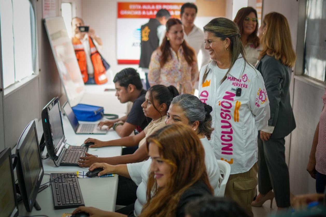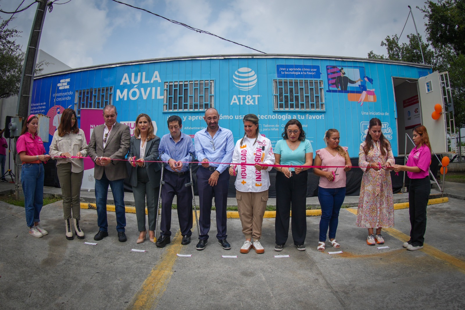 Juárez, Nuevo León.- Para contribuir a la alfabetización digital de la comunidad a través de cursos en habilidades de tecnología, la Secretaría de Igualdad e Inclusión, AT&T México, Construyendo y Creciendo, y la Cámara Mexicana de la Industria de la Construcción (CMIC), inauguraron hoy el Aula Móvil-Nueva Ruta en el Centro Comunitario Héctor Caballero, en el municipio de Juárez.