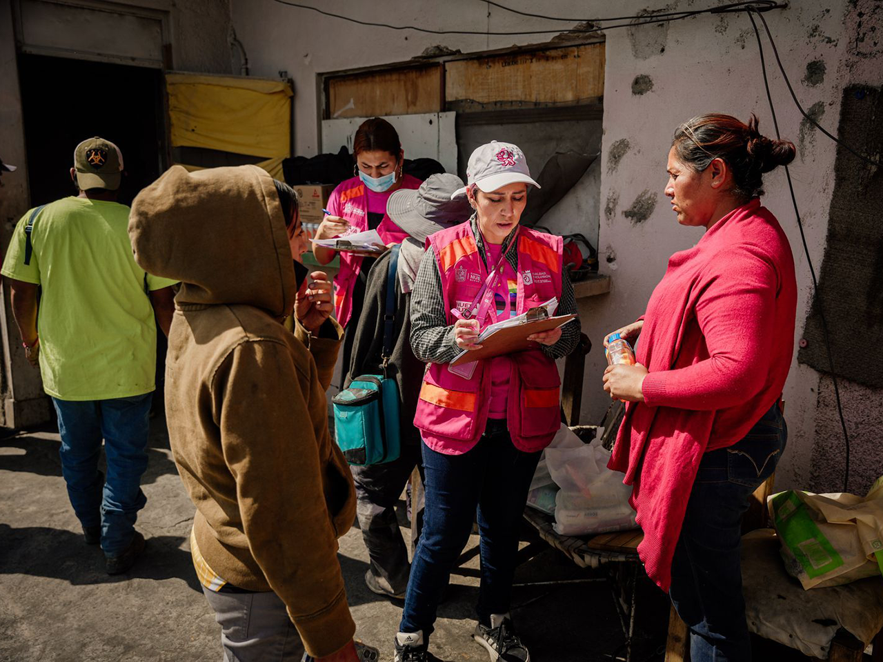 En la Colonia El Obispo, cercano a carretera Monterrey- García, se realizó la entrega de kit de hidratación, despensas, kit de higiene, colchonetas y kit para menores de dos años, tinacos para almacenamiento de agua potable para mitigar temas de salud de las personas. Asimismo, se realiza censo para conocer las afectaciones en la zona, el levantamiento de CHECS, identificando daños a la vivienda y afiliación a Cuidar tu salud para las familias afectadas.