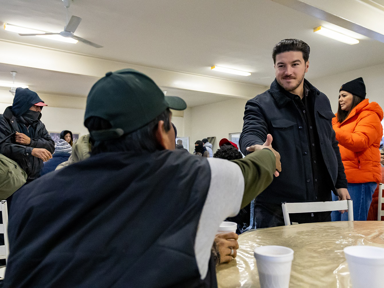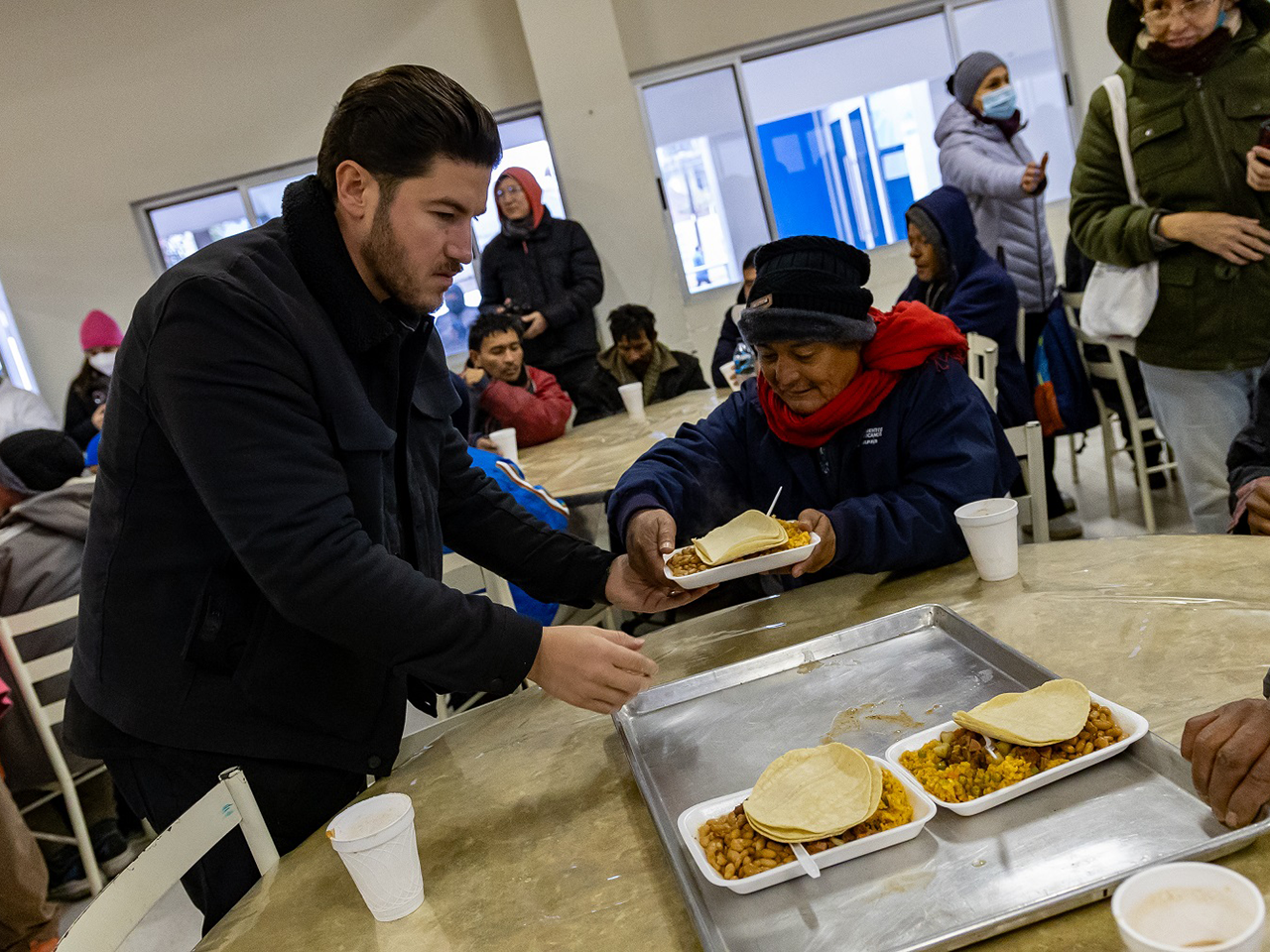 Monterrey, Nuevo León.- Para proteger a la población vulnerable de las bajas temperaturas, el Gobernador de Nuevo León, Samuel Alejandro García Sepúlveda acudió al Centro Misionero María Siempre Virgen donde entregó cobijas, insumos básicos y bebidas calientes.