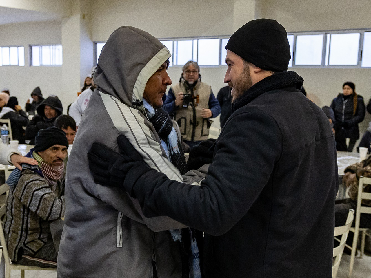 "Estamos estas 24 horas conscientes de que hay que ayudar a todo el mundo, hay que llevar cobijas, abrigo; y en este caso estoy muy contento de estar con ustedes compartiendo el alimento, el café y el chocolate", expresó García Sepúlveda.