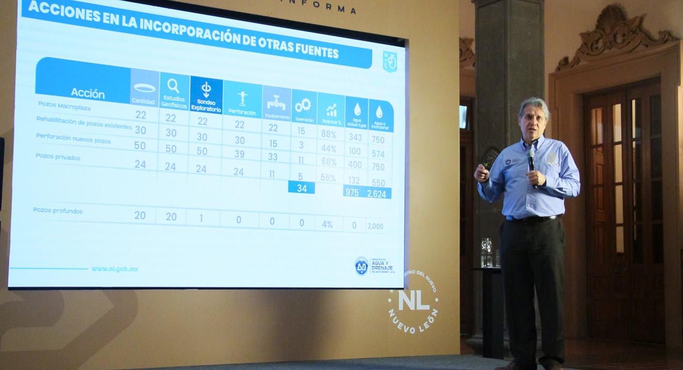 El Director General de Servicios de Agua y Drenaje de Monterrey, Juan Ignacio Barragán, dio a conocer que derivado de todos los análisis que se han realizado, el número de pozos profundos se incrementó de 6 a 20, los cuales ya se encuentran en estudios geofísicos y aproximadamente aportarían a la ciudad 2,000 litros por segundo.