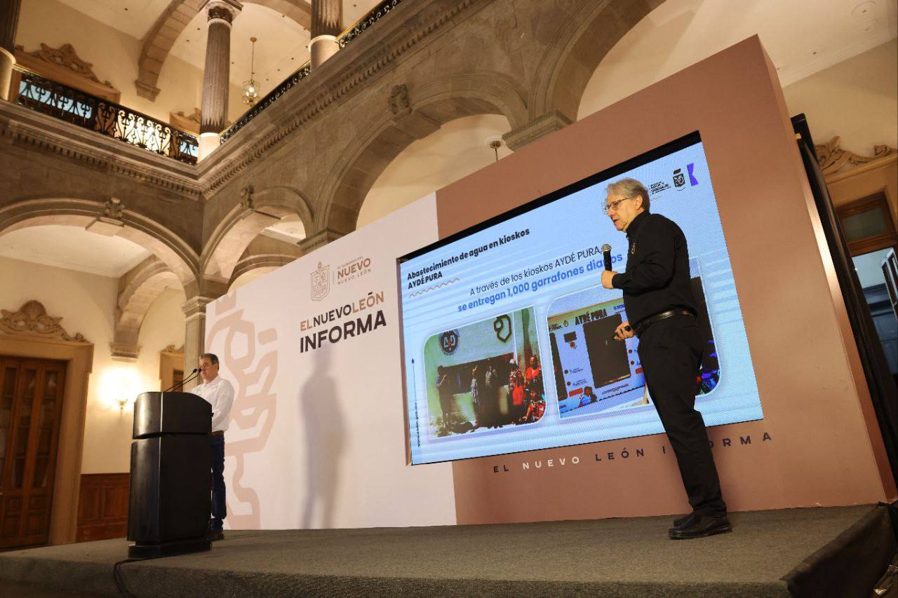 “Hoy jueves estamos exactamente a una semana del Ciclón, hoy jueves tenemos ya el servicio 100% suministrado en la ciudad…Santa Catarina a la mitad y hoy se va a notar la mejora”, expresó.