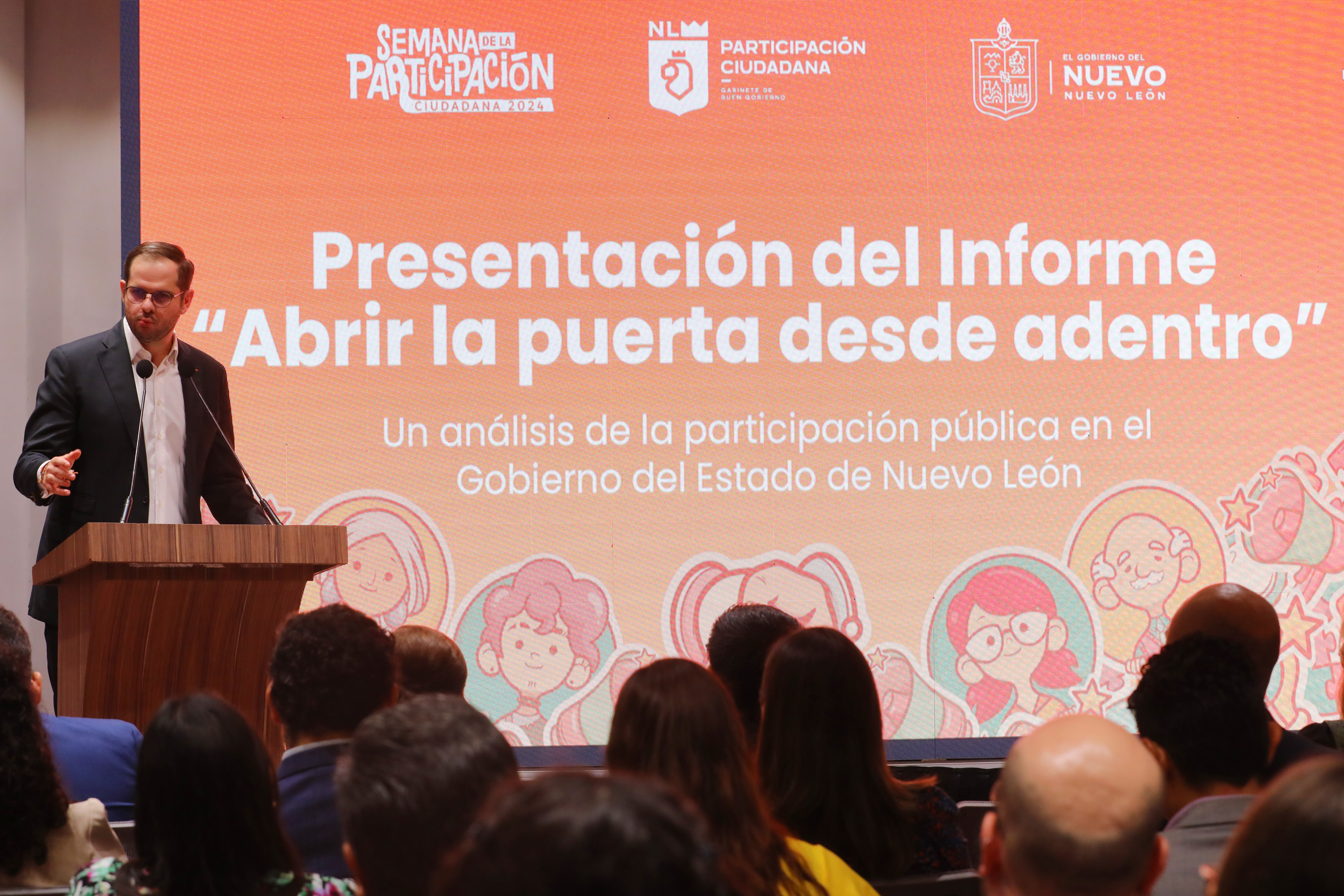 “En el 2021 reportamos 106 espacios participativos, en 2022 triplicamos a 321 y en 2023 alcanzamos un hito histórico… yo soy un fiel convencido de que las personas tienen toda la intención de participar, solamente necesitan los espacios para poder hacerlo y eso me da mucho gusto, que seamos esa punta de lanza en Nuevo León en donde las propias dependencias sean quienes están abriendo los espacios de participación”.