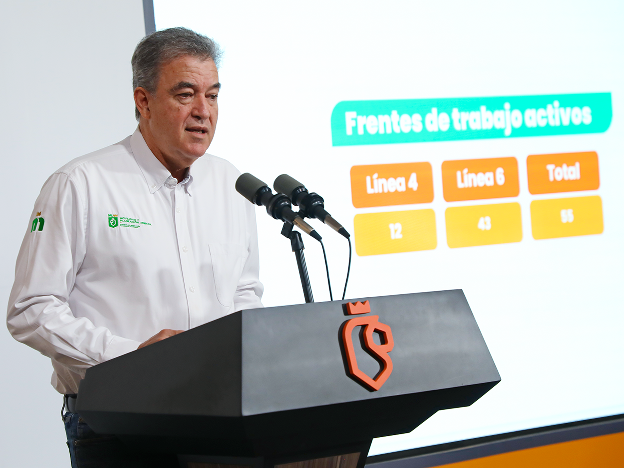 - El Secretario de Movilidad y Planeación Urbana, Hernán Villarreal detalló que de manera individual, la Línea 4 presenta un avance de casi un 35 por ciento, y la Línea 6 del 37 por ciento.