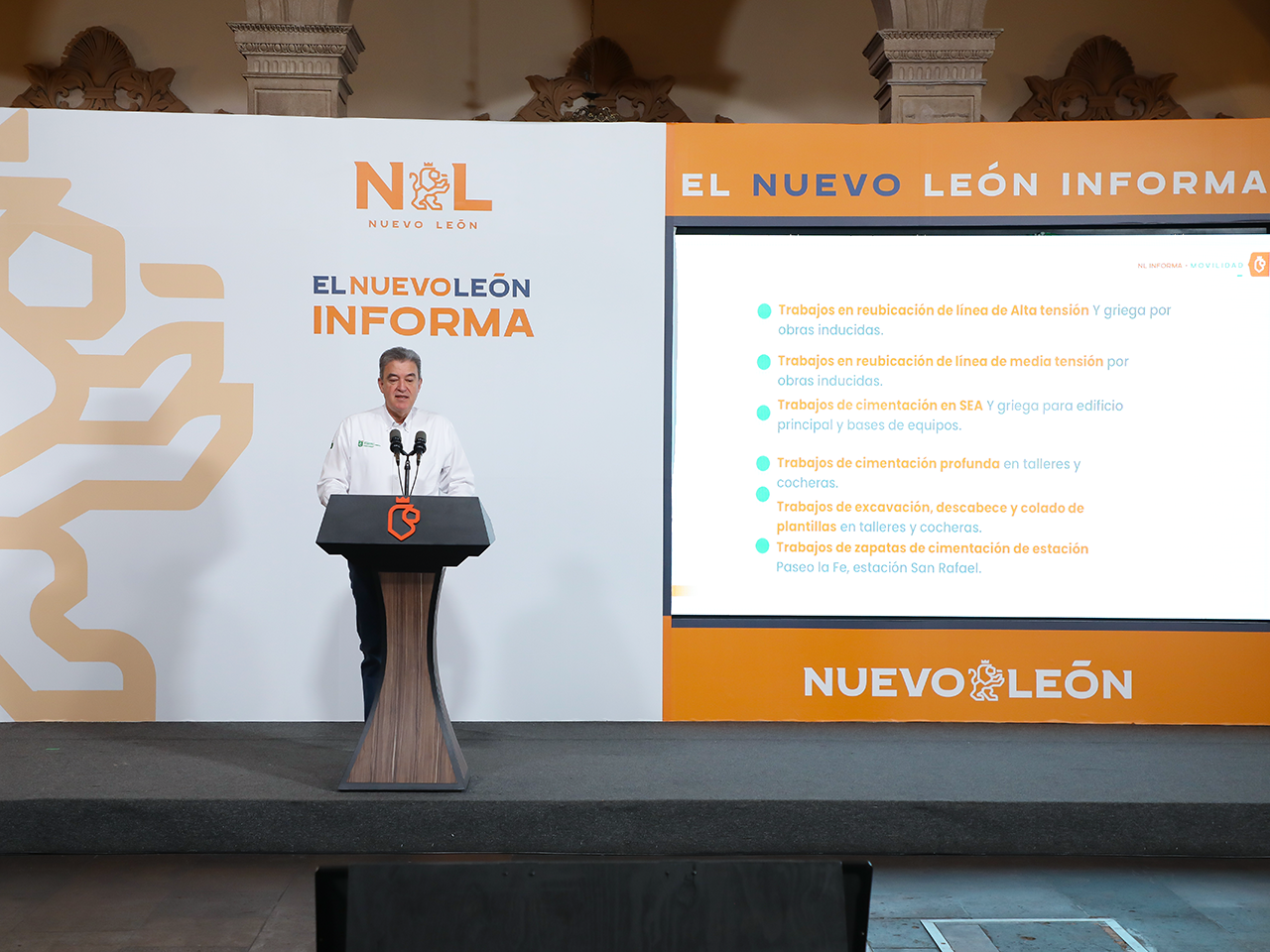 Dentro del Nuevo León Informa, el Secretario precisó que de manera individual, la Línea 4 lleva un progreso de casi un 35 por ciento.