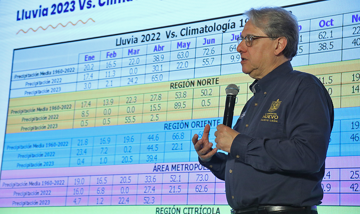 Por último, el Director General de AyD, detalló que durante abril la región citrícola fue la zona donde más se presentaron precipitaciones pluviales, registrando 154.7 milímetros. Precisó que, en el mismo mes, se realizaron 7 vuelos de estimulación de lluvias, la mayoría en las Cuencas Cerro Prieto y La Boca. Por otro lado, dio a conocer el almacenamiento de las presas del estado al día de hoy; la Presa El Cuchillo registra un 43.7% de su llenado, Cerro Prieto 13.9% y La Boca 52.5%.