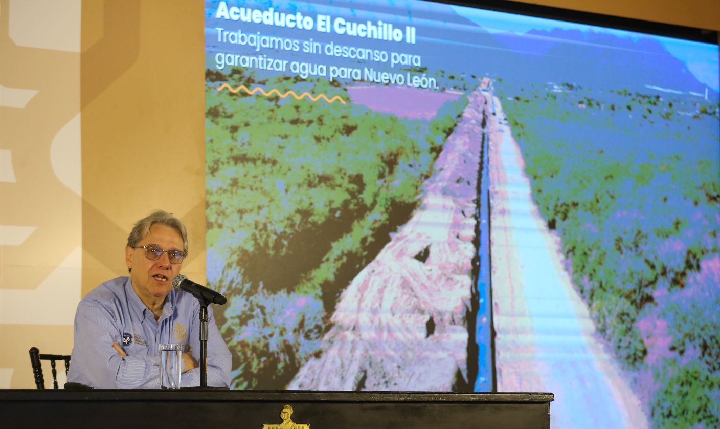 Servicios de Agua y Drenaje de Monterrey, presentó los avances de dos proyectos estratégicos en marcha del Plan Maestro para Garantizar el Agua de Nuevo León hasta 2050; el Acueducto El Cuchillo II, que ha recibido hasta el día de hoy 38% del total de los tubos que lo integrarán y la Presa La Libertad, que registra un avance físico de 47.37% en su construcción.