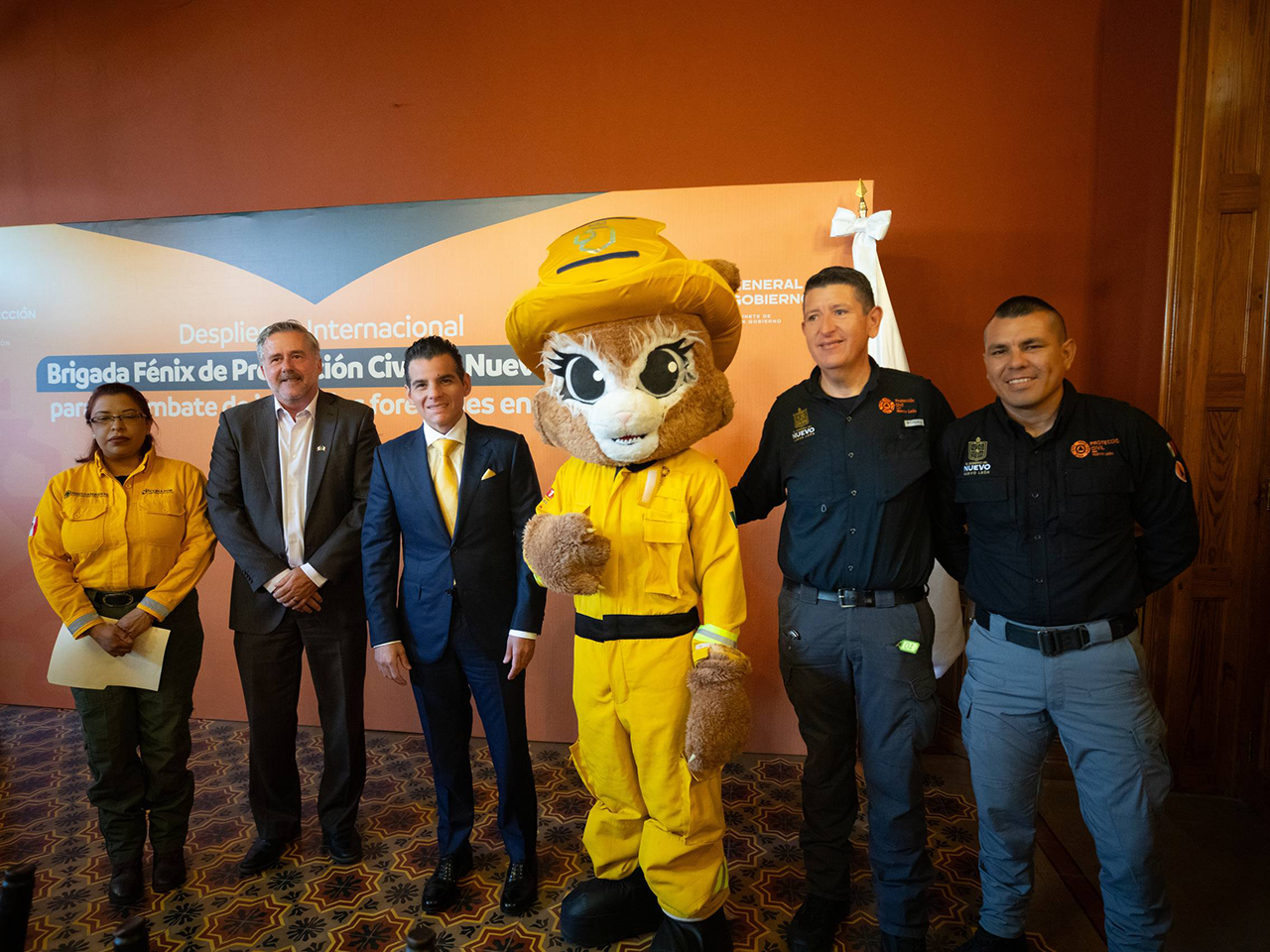 En el evento, realizado en el Salón Rojo de Palacio de Gobierno, el Secretario General de Gobierno estuvo acompañado de Erik Cavazos, director de Protección Civil de Nuevo León; Héctor Dávila López, comandante forestal de la Brigada Fénix de Protección Civil; Eric Gelinas, Cónsul Comercial de Canadá en Monterrey; así como de Asucena Estrada Ibarra, promotora de Desarrollo Forestal de la Comisión Nacional Forestal (CONAFOR) y Juan Ángel Resendez Rodríguez, Asistente Operativo de Protección Civil del Estado de Nuevo León.