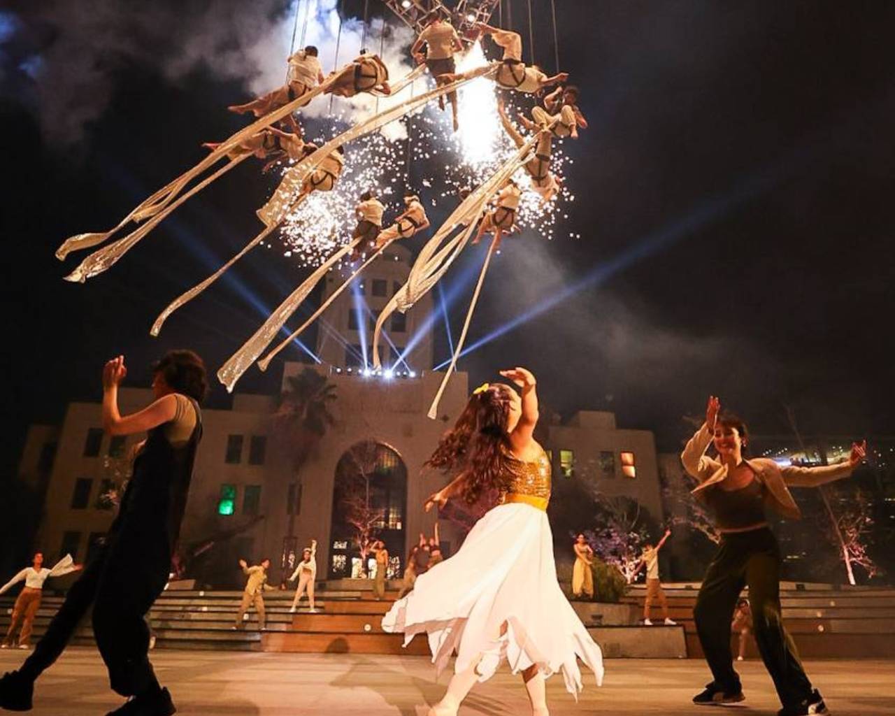 El espectáculo llevó a escena a más de 60 intérpretes, dando espacio a la danza contemporánea y urbana de la maestra Carla Ochoa; la danza artística de siluetas del maestro Ricardo Galván;la espectacular danza aérea de la coreógrafa española ÁgataTantiñá; la presentación del saxofonista Eliseo Rodríguez; la música original compuesta por Nuwanda; los arreglos de Alejandro Vera y Luis Enrique Guevara; los efectos especiales y láser mapping, de SkyLab de Gil Caballero, así como la iluminación de Proshow a cargo de Fer Torres.
