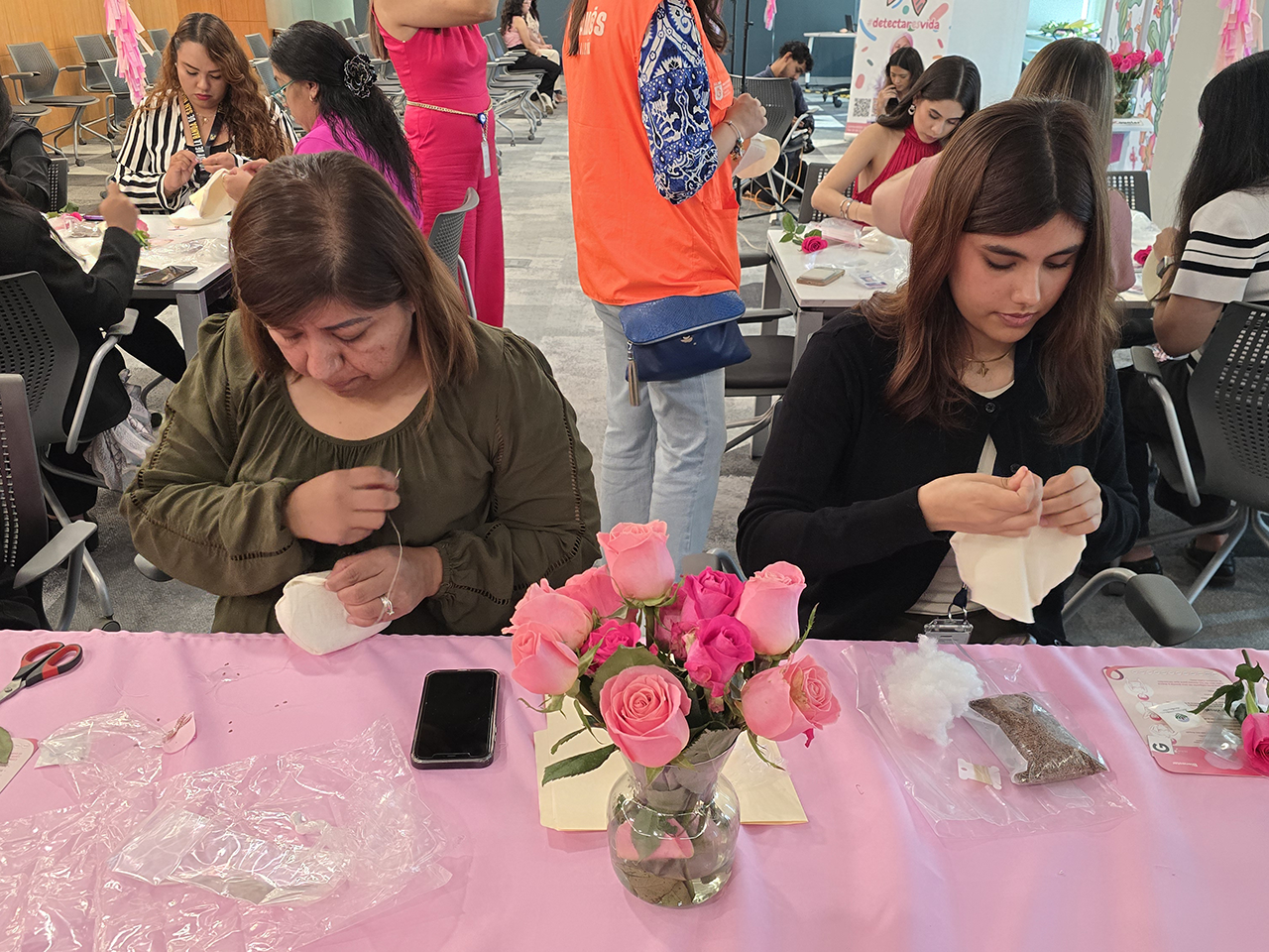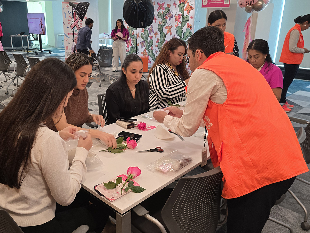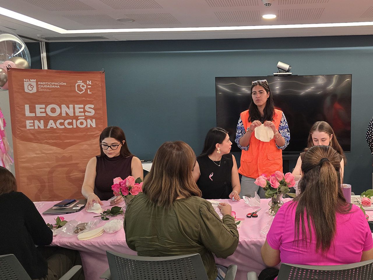 Monterrey, Nuevo León.- En el marco del “Mes Rosa” voluntarias del programa “Leones en Acción” de la Secretaría de Participación Ciudadana y empleadas de Cemex elaboraron prótesis mamarias artesanales.