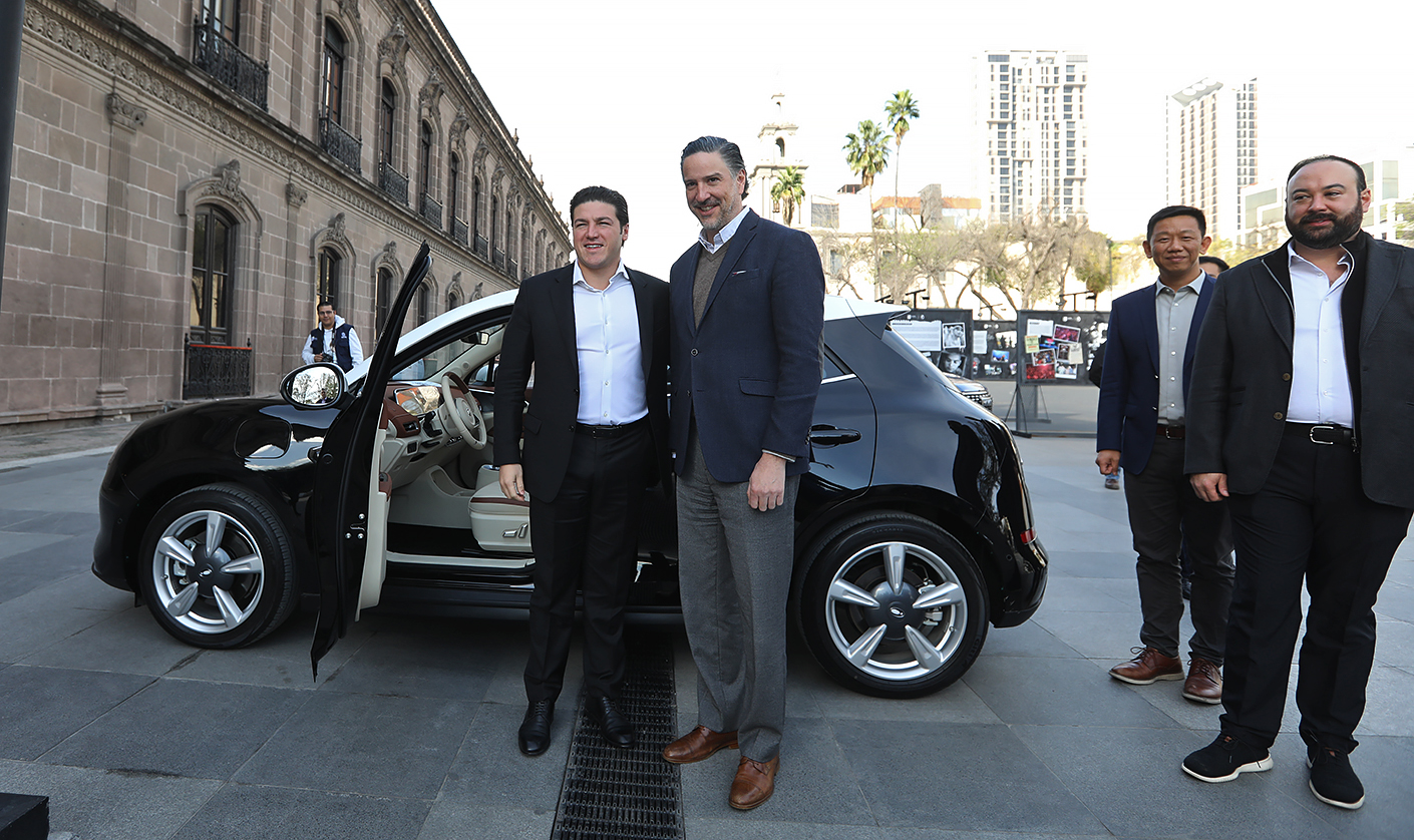 “Con mucho gusto los recibimos aquí está el secretario de Economía; el (Subsecretario) de Inversión Extranjera, vamos a ir a ver terrenos, naves industriales. Ojalá se convenzan de que Nuevo León es el mejor lugar, el hub mundial de electromovilidad, y nosotros muy contentos porque son empresas de excelencia en el ramo automotriz.