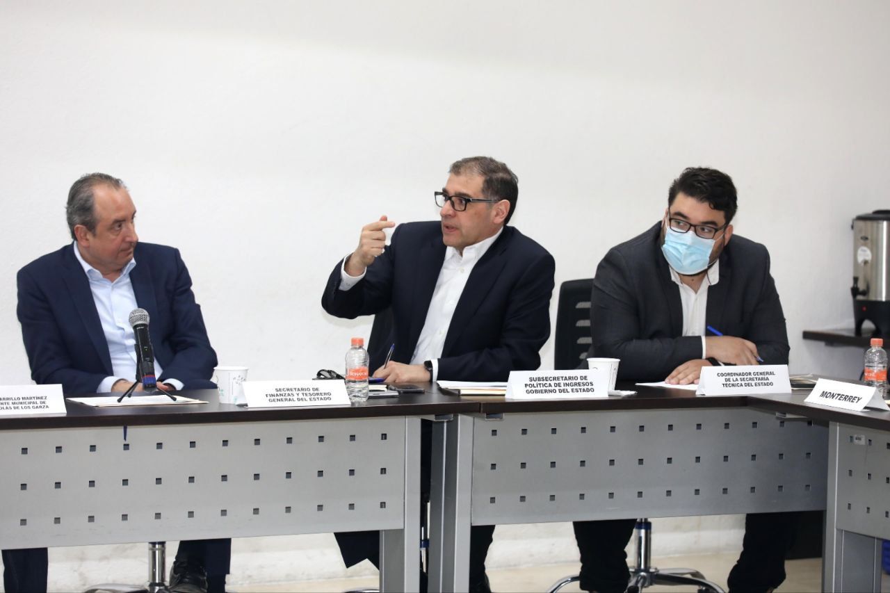 Monterrey, Nuevo León.- Para subsanar la baja en las aportaciones federales que se registraron en el primer bimestre del 2023, el Secretario de Finanzas y Tesorería General del Estado, Carlos Garza Ibarra se reunió con la Comisión de Finanzas Municipales de la Mesa de Colaboración Metropolitana.