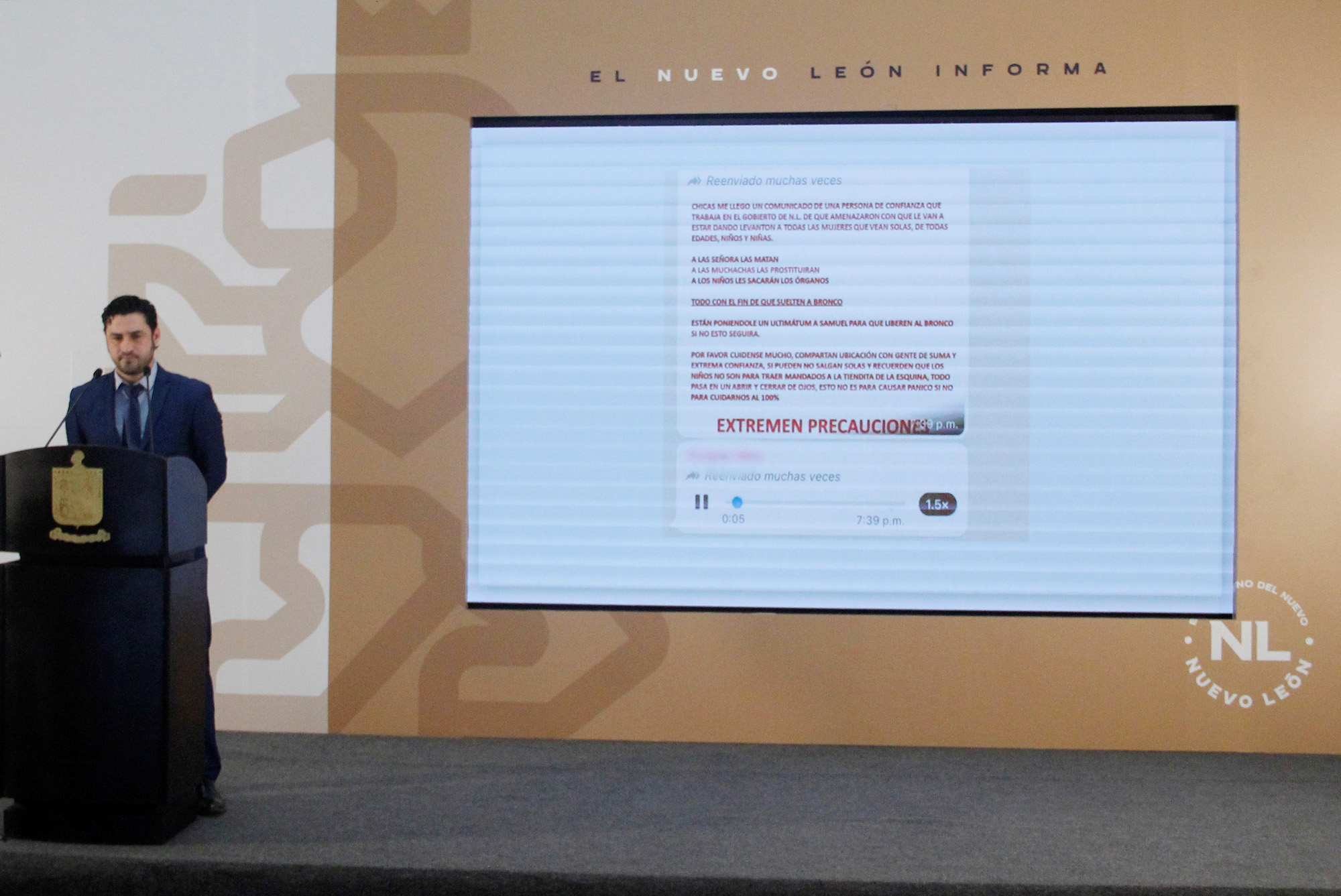 Bajo esa premisa, aclaró que la información difundida en últimos días del supuesto levantamiento de mujeres en Nuevo León, es falsa.