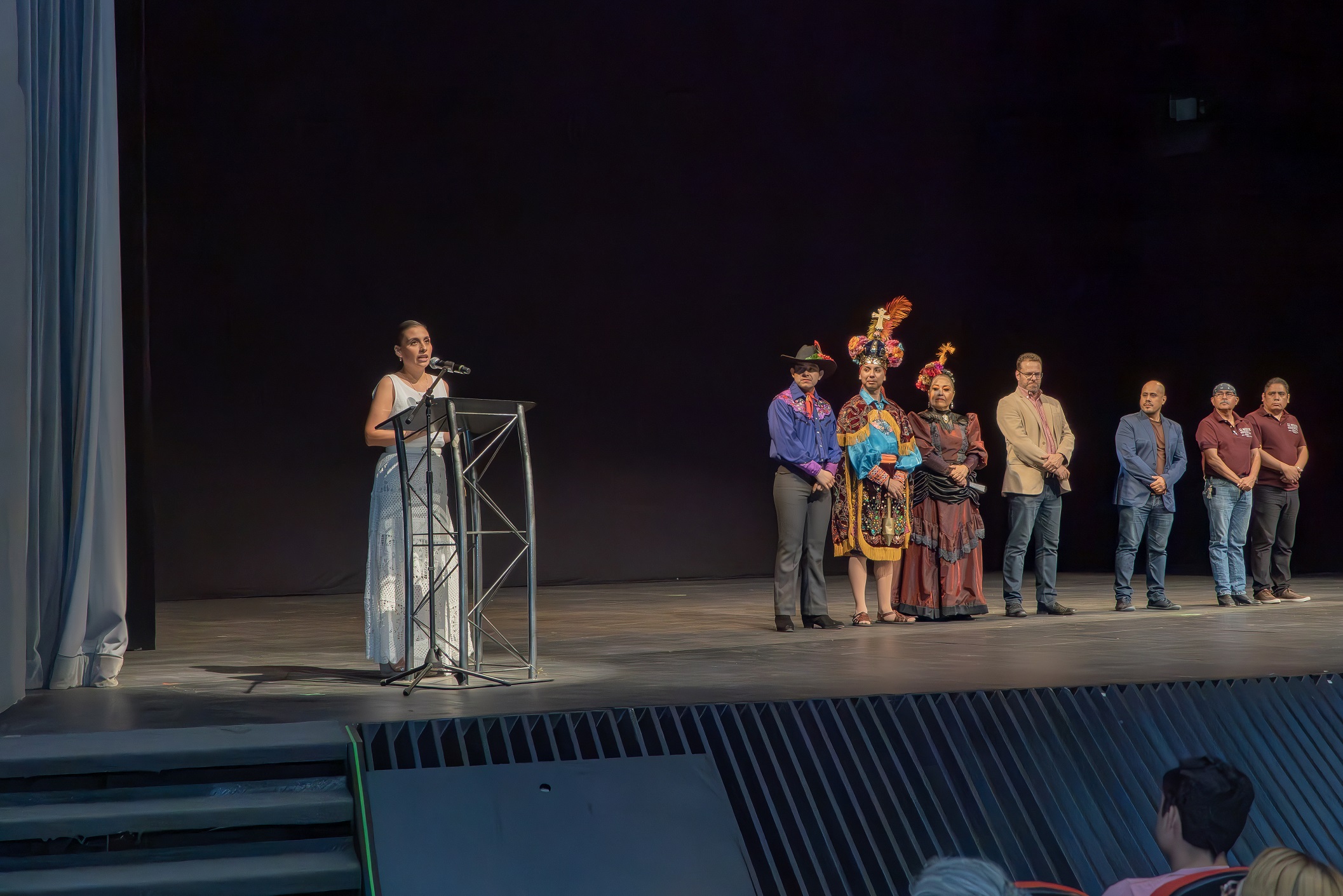 “Hoy nos reunimos en este 32 Mitote Folklórico para rendir un homenaje póstumo a un hombre cuyo legado ha dejado una huella en la cultura de nuestro estado: el Maestro Jaime Guerrero Hernández, quien más que un eximio bailarín y coreógrafo; fue un visionario y un pilar en la promoción”, expuso la Dra. Melissa Segura Guerrero, Secretaria de Cultura de Nuevo León, ante la audiencia reunida en la Gran Sala del Teatro de la Ciudad.