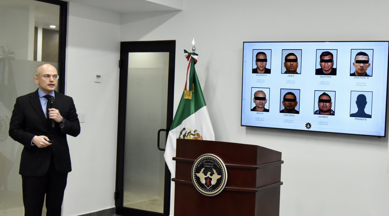 Fue la mañana de este viernes cuando se cumplió con siete órdenes de aprehensión en contra de los ex policías Eduardo “N”, José “N”, Agustín “N”, Jonathan “N”, Jesús “N”, Cristian “N” y Xavier “N”, mismos que ya fueron dados de baja; y el octavo ex policía se encuentra incapacitado por lo que sigue su búsqueda por parte de las autoridades investigadoras. Mientras que de los cuatro civiles, a uno ya se le ejecutó también una orden de aprehensión.