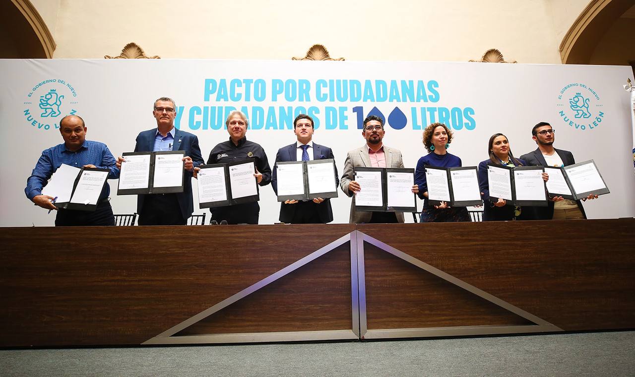 Con el objetivo de fortalecer las estrategias y la cultura del cuidado del agua en Nuevo León, el Gobernador Samuel Alejandro García Sepúlveda, firmó junto a ciudadanos e industriales el pacto ‘Ciudadanas y Ciudadanos de 100 Litros’.