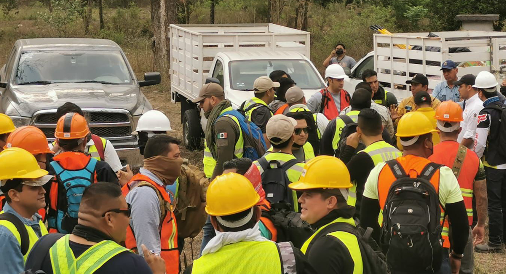 Los varones se dividieron en tres grupos, uno de ellos enfocado al combate al incendio forestal y abriendo brechas, supervisados por el personal de rescate y auxilio.