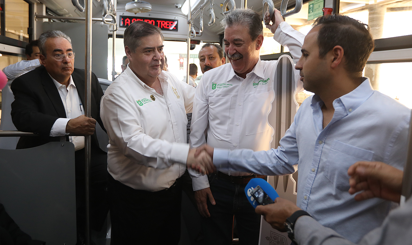 Acompañado del director del Instituto de Movilidad y Accesibilidad, José Manuel Valdez Gaytán, el Secretario de Movilidad y Planeación Urbana, Hernán Villarreal presidió la décima primera entrega de camiones que serán operados por la empresa Unión Permisionarios Ruta Larga 3, bajo el esquema de pago por kilómetro.