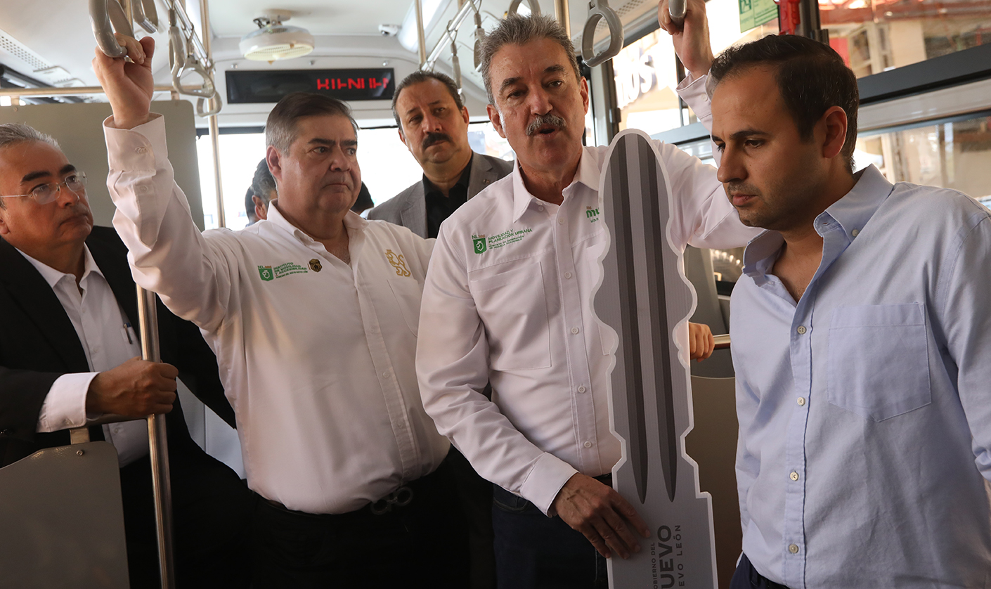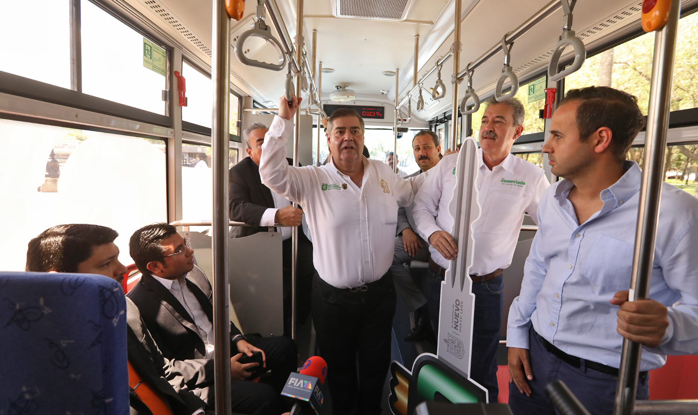 Monterrey, Nuevo León.- Autoridades estatales encabezaron este miércoles entrega de 30 unidades por parte del Gobierno del nuevo Nuevo León, para la operación de la ruta directa Santa María-Rosita, lo que permitirá comunicar a los municipios de Apodaca, Guadalupe, Monterrey, Pesquería y San Nicolás, como parte del programa de reestructura del transporte público.